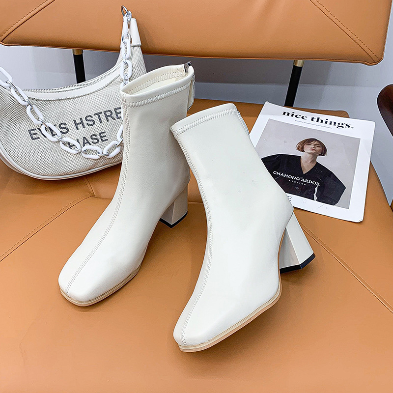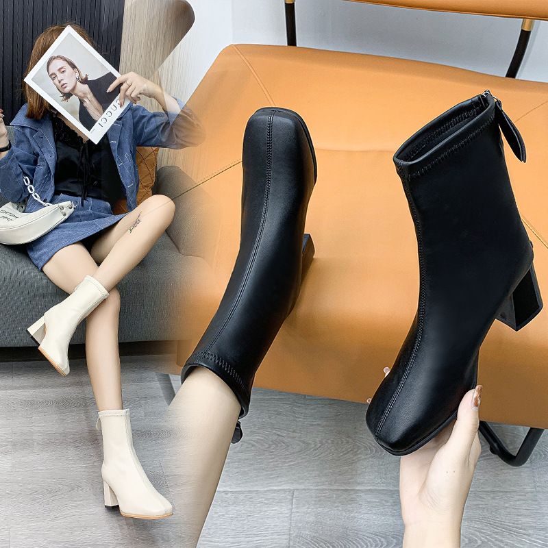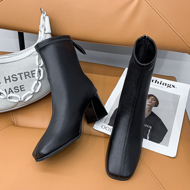 Breakj Breakj Short Boots Femininity Coarse And Female Boots 2023 Autumn And Winter New Square High And Thin Leg Size Martin Boots