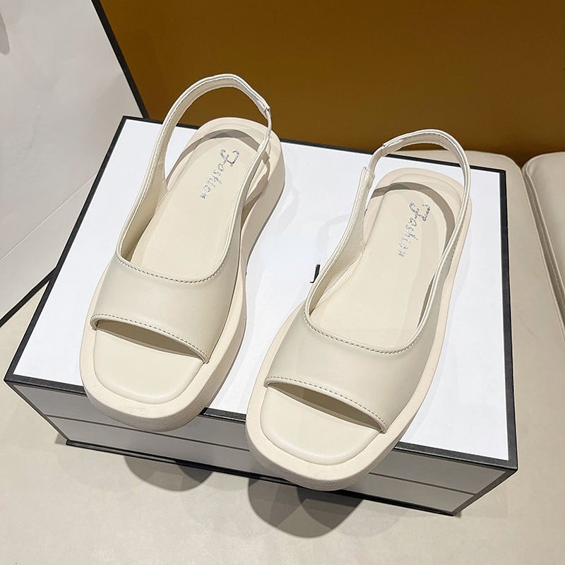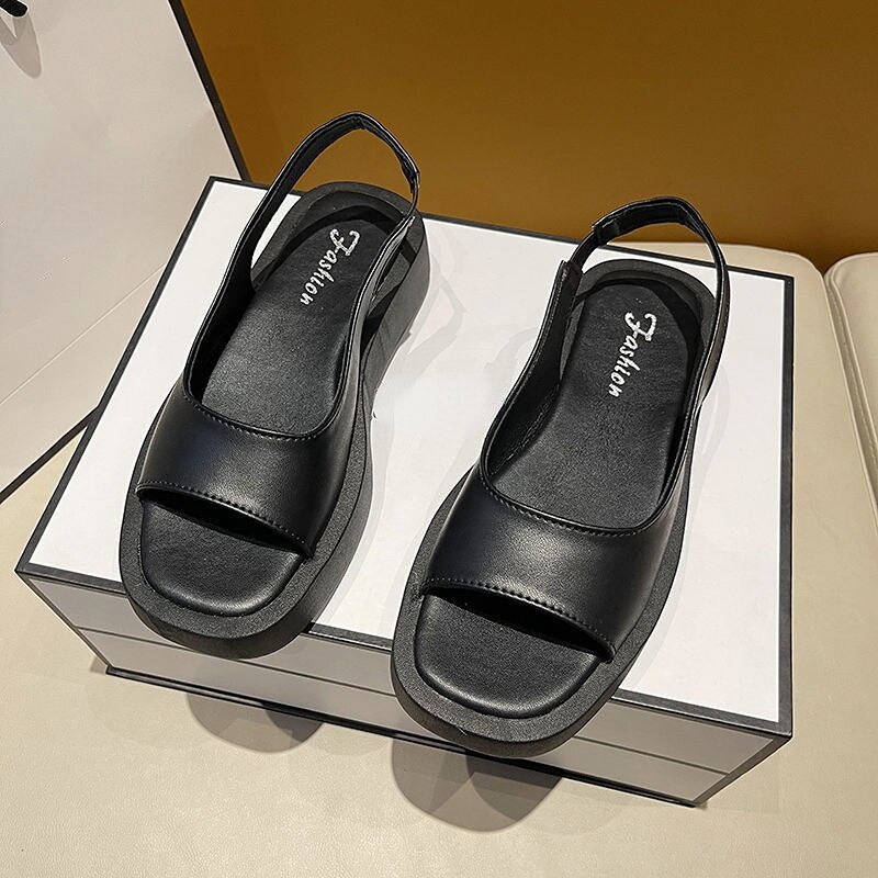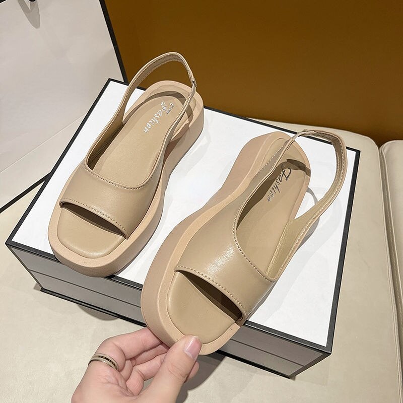 Breakj Women's Sandals 2022 Summer New Fashion Shoes Elegant Flat Sandals Women Genuine Leather Simple Platform Roman Sandals for Women