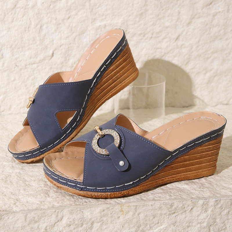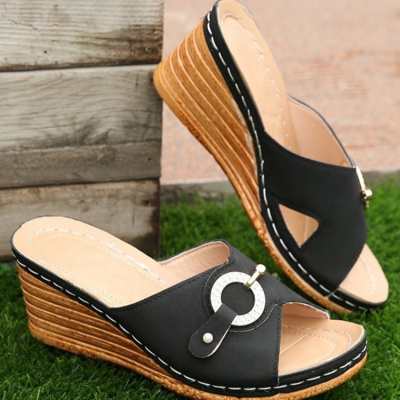 Breakj Breakj Summer New Large Size With Slippers Female A Word With Casual Solid Color Thick Bottom Slippers