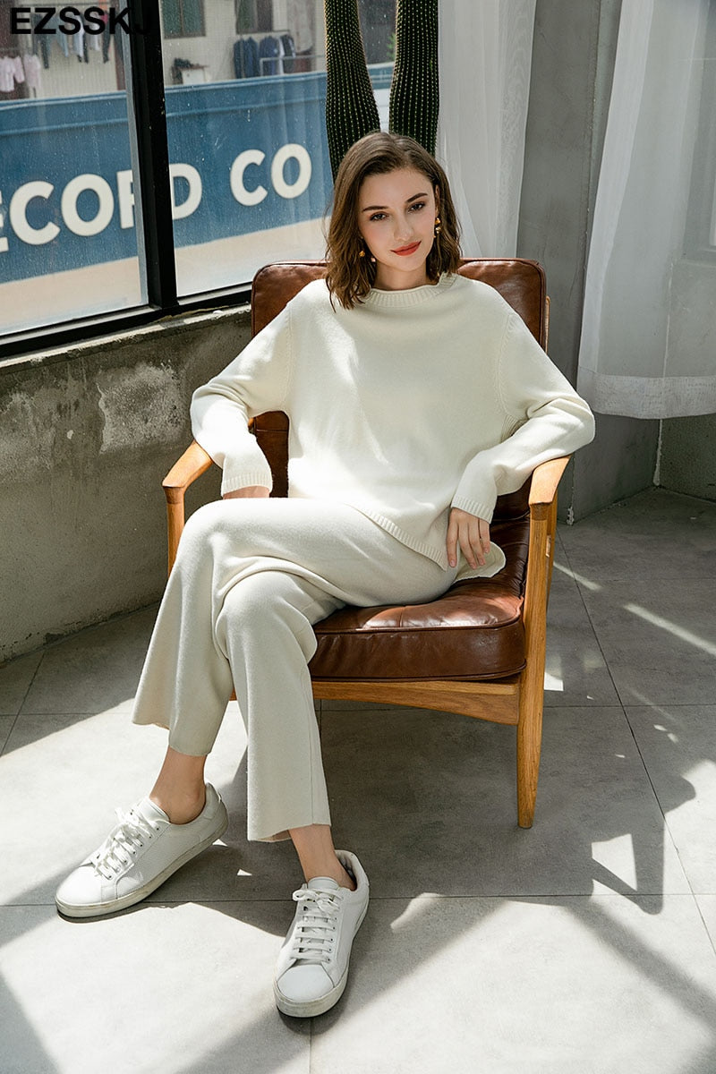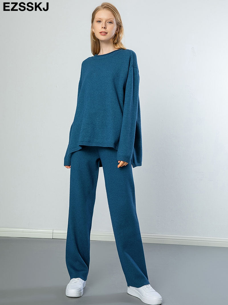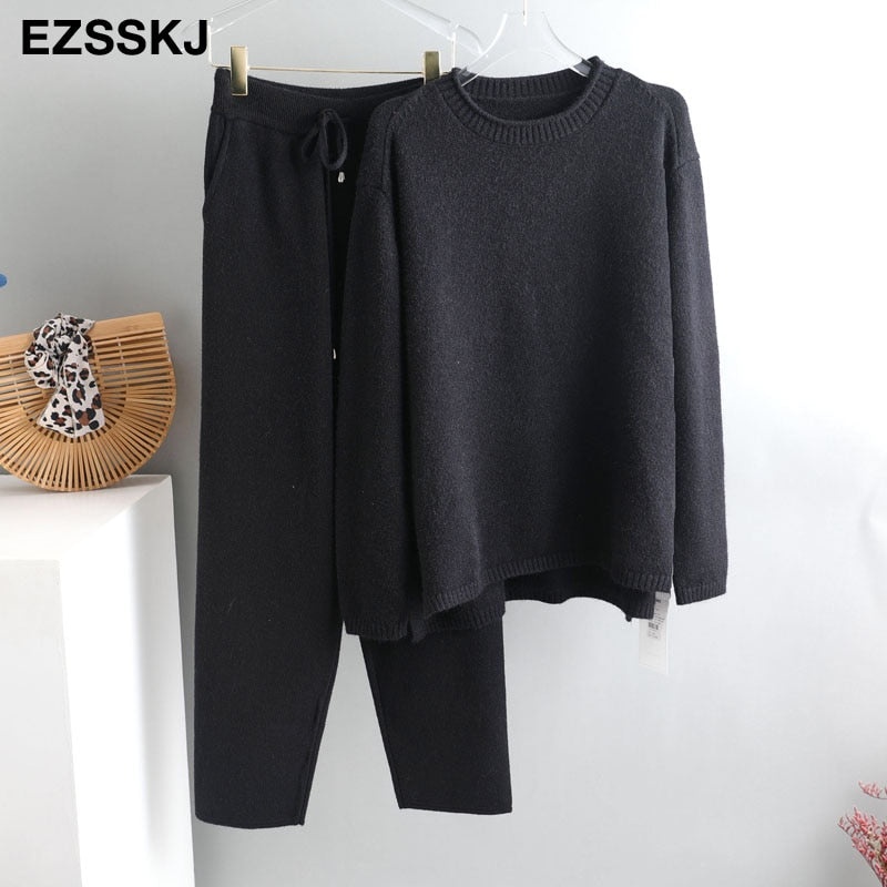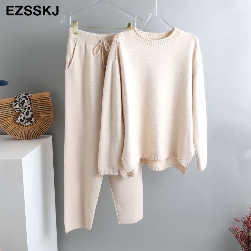 2 Pieces Set Women Knitted Tracksuit Turtleneck Sweater + Carrot Jogging Pants Pullover 2021  Sweater Set CHIC Knitted Outwear