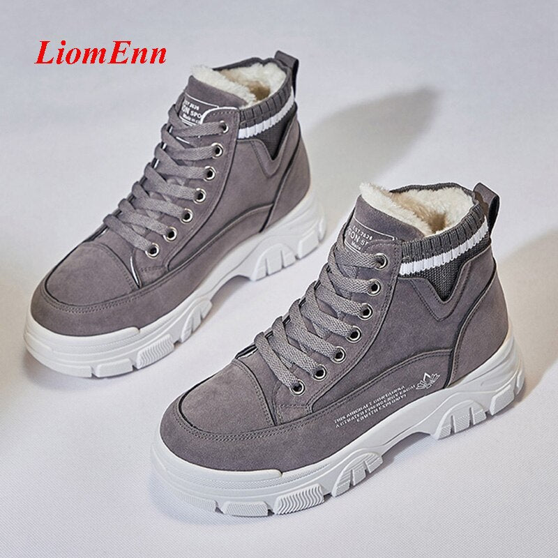 2020 Ladies Winter Sneakers Fur Plush High Top Sneakers Platform Vulcanized Casual Sport Shoes Woman Snow Boots basket femme