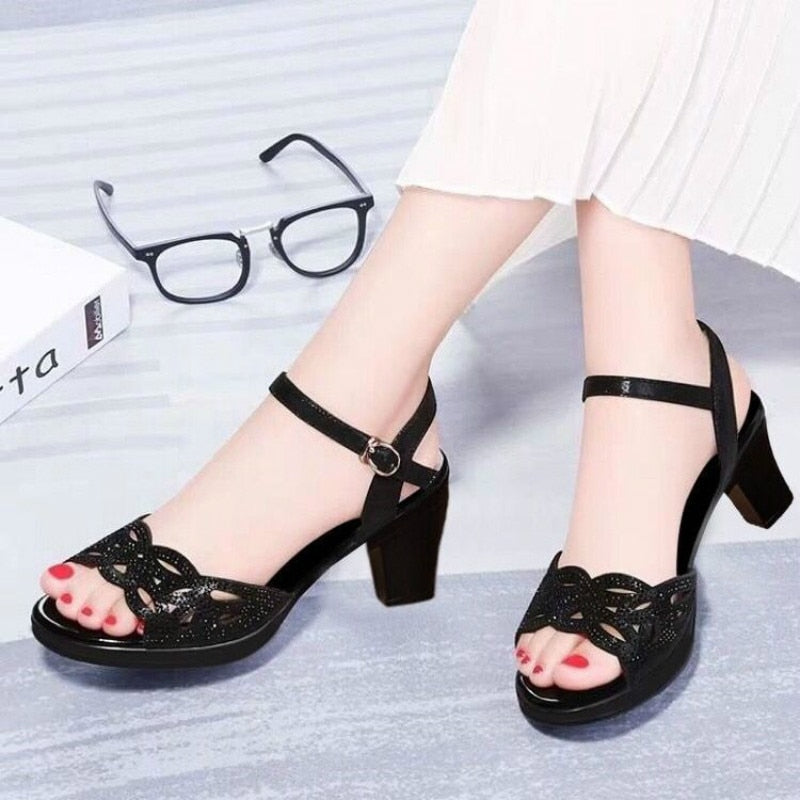 2020 New Thick Heel Sandals Women's Summer Fish Mouth Women's Shoes Rhinestone High Heels Women's Black Mother Shoes Women