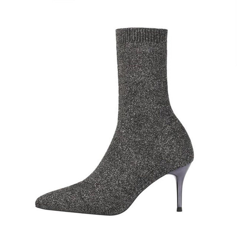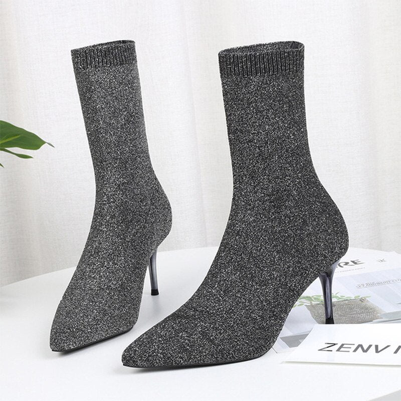 2020 Spring Autumn Sexy Sock Pointed Boots Large Size 42   High Heels for Women Fashion 7cm Glamour Black Ankle Boots  Female
