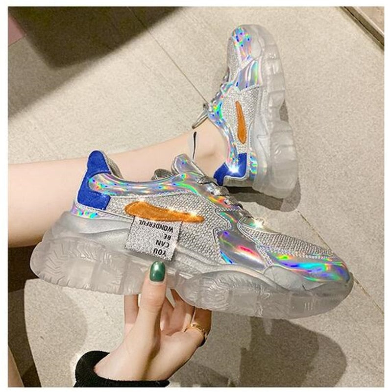 2020 Spring Trend Women Transparent Sneakers Harajuku Platform Woman Shoes Laser Jelly Casual Shoes Shining Shoes Running Shoes
