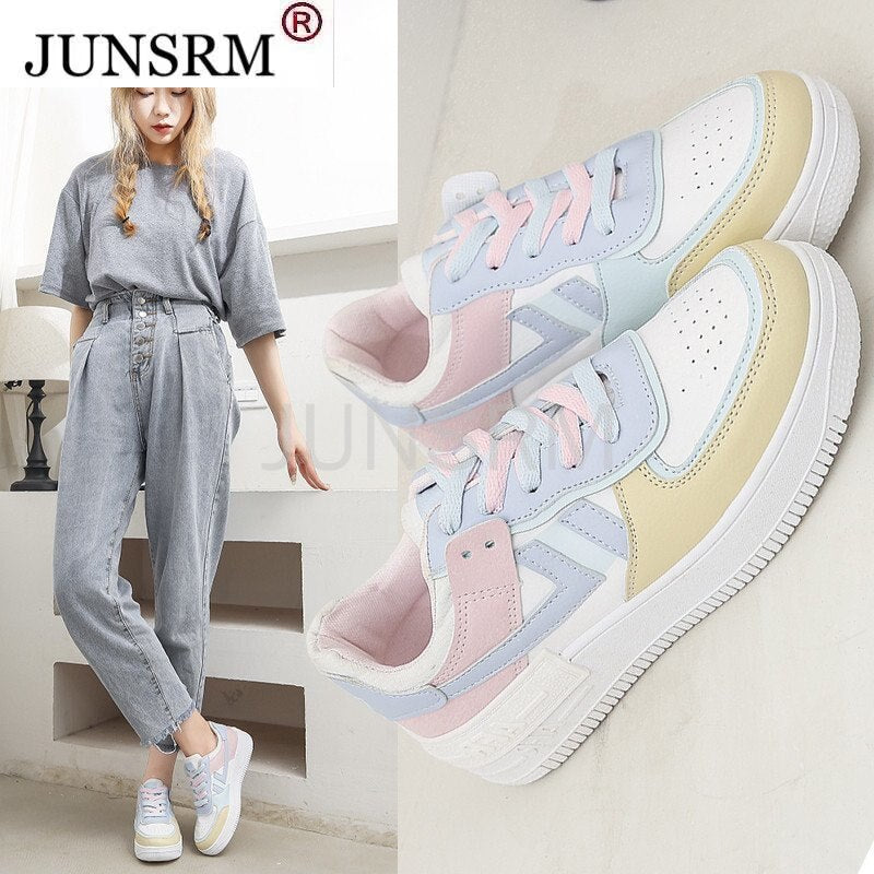 2020 Women Sneakers White Pink Tennis Cute Lovely Girl Shoes Female Student Shoes Platform Flats Casual Ladies Vulcanize Shoes