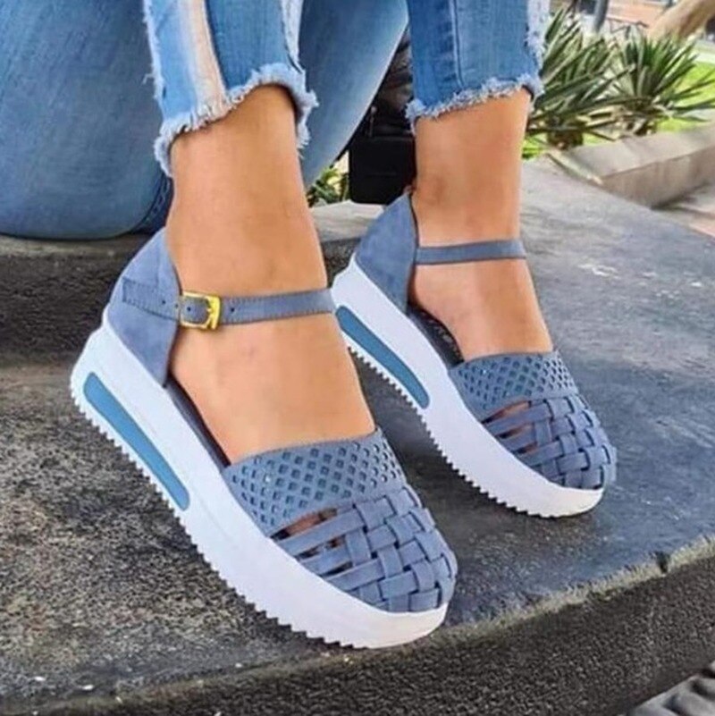 2021 Fashion Women Hollow Out Sandals Summer Flat Heel Sandals Female Casual Sewing Increase Platform Sandals Ladies Sandalias