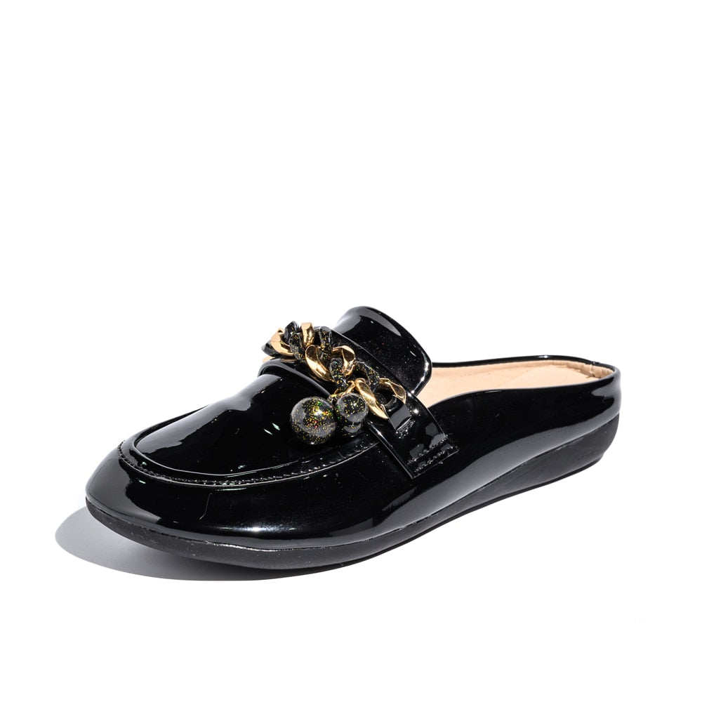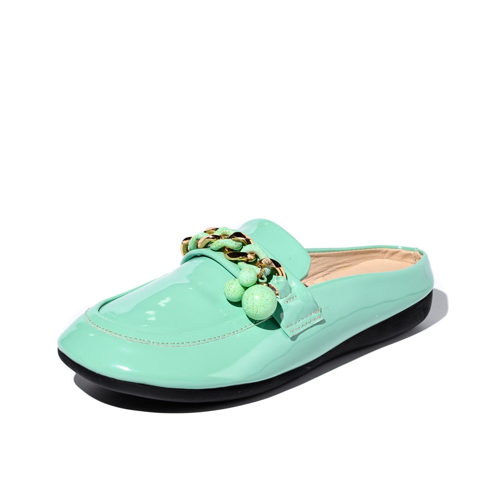 2021 Luxury Brand Designer Women Slippers Slip On Mules Flat  Casual Shoes  Slides  Summer Footwear  Female Patent leather shoes
