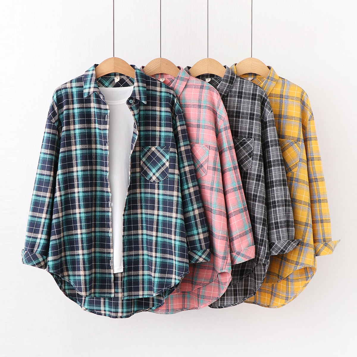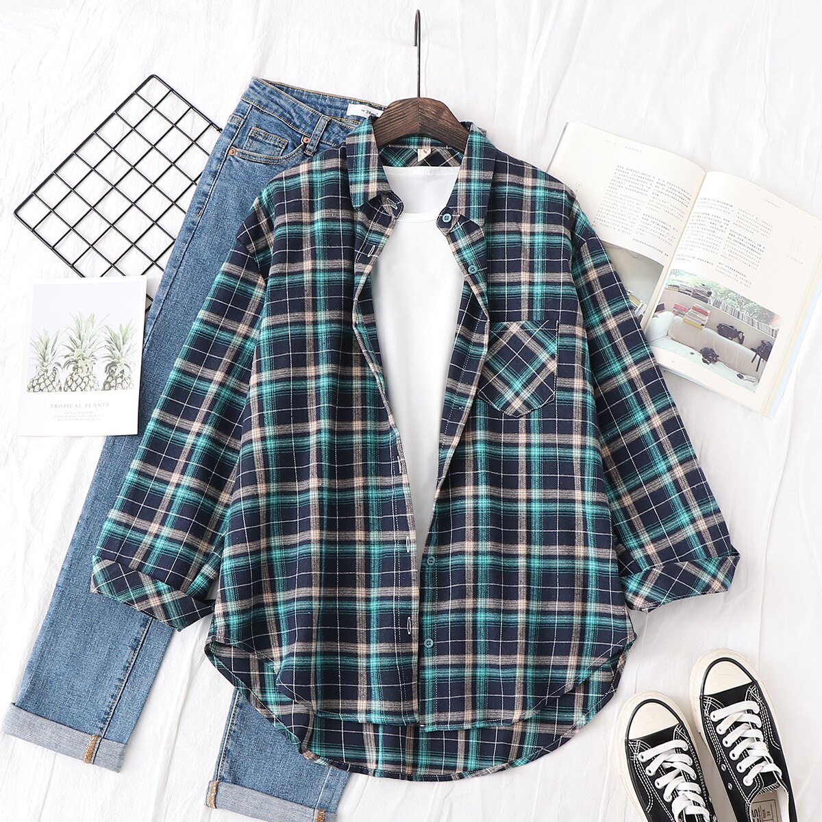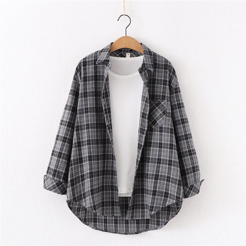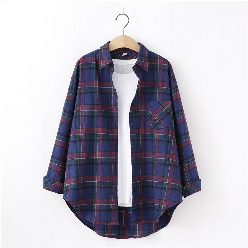 2021 New Spring Fine Loose Women's Plaid Shirt Blouse Art College Style Casual Female Long Sleeve Blouses and Tops Blusas