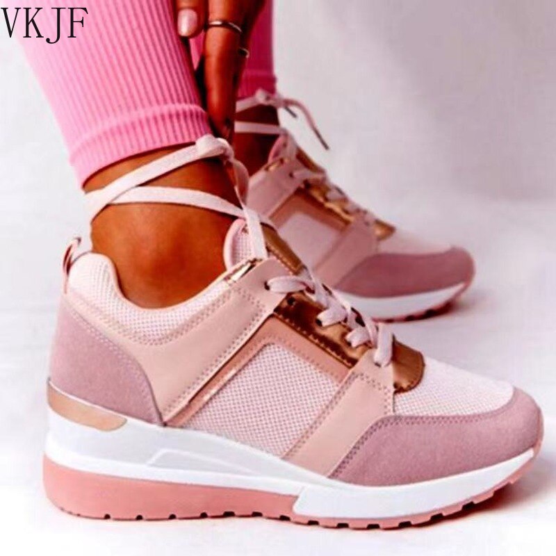 2021 New Women Sneakers Lace-Up Wedge Sports Shoes Women's Vulcanized Shoes Casual Platform Ladies Sneakers Comfy Females Shoes