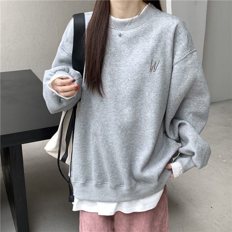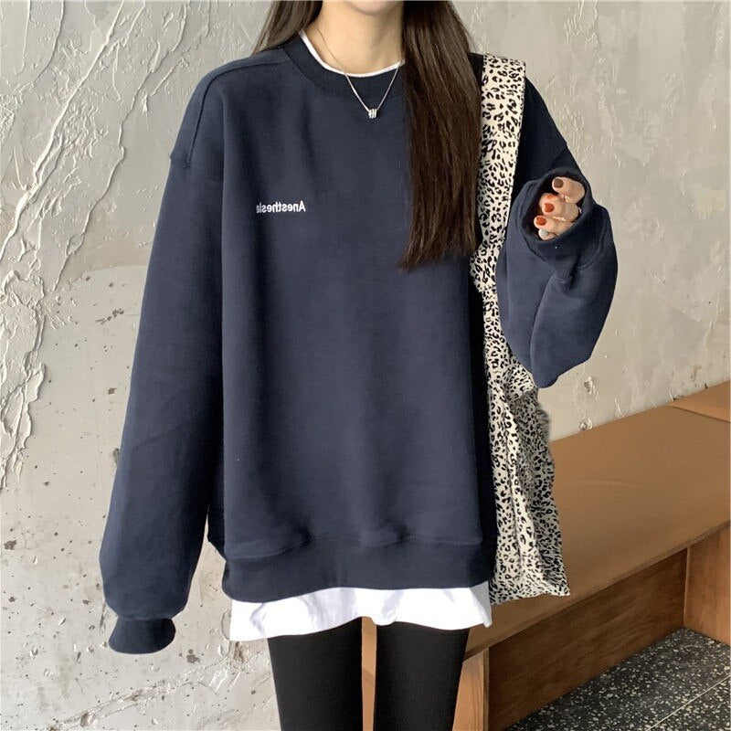 2021 Splicing Pullover Women Autumn Winter Fleece Thick Korean Version Oversized Hoodies O Neck Long Sleeve Girl Sweatshirt