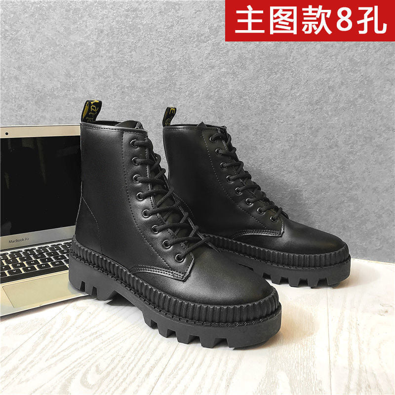2021 Winter New Black Thick Base Cloth Mid-Top Boots Men Fall British Trend Boots Hight-Top Korean Casual Men's Shoes Boots