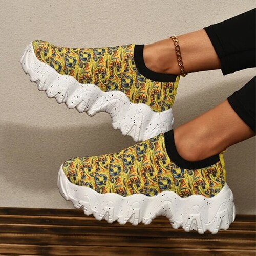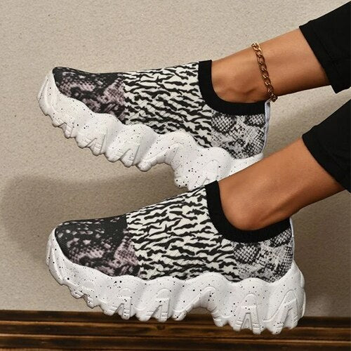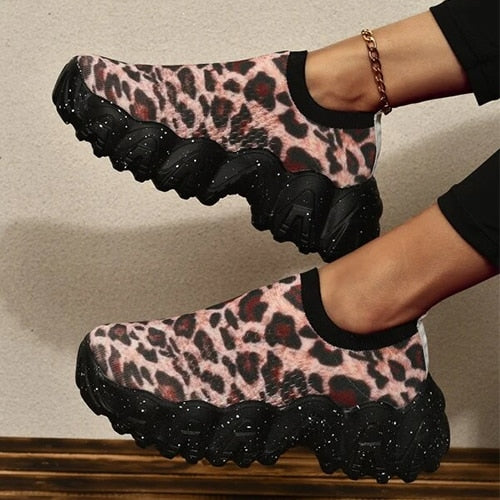 2021 Women Platform Sneakers Slip-on Elastic Band Vulcanized Female Leopard Sport Shoes Ladies Summer Footwear Plus Size