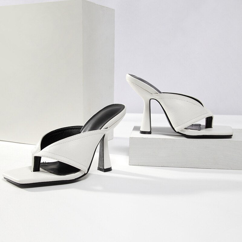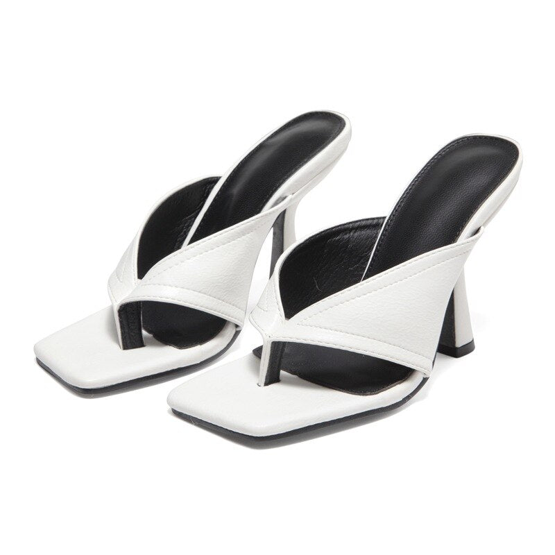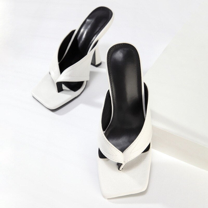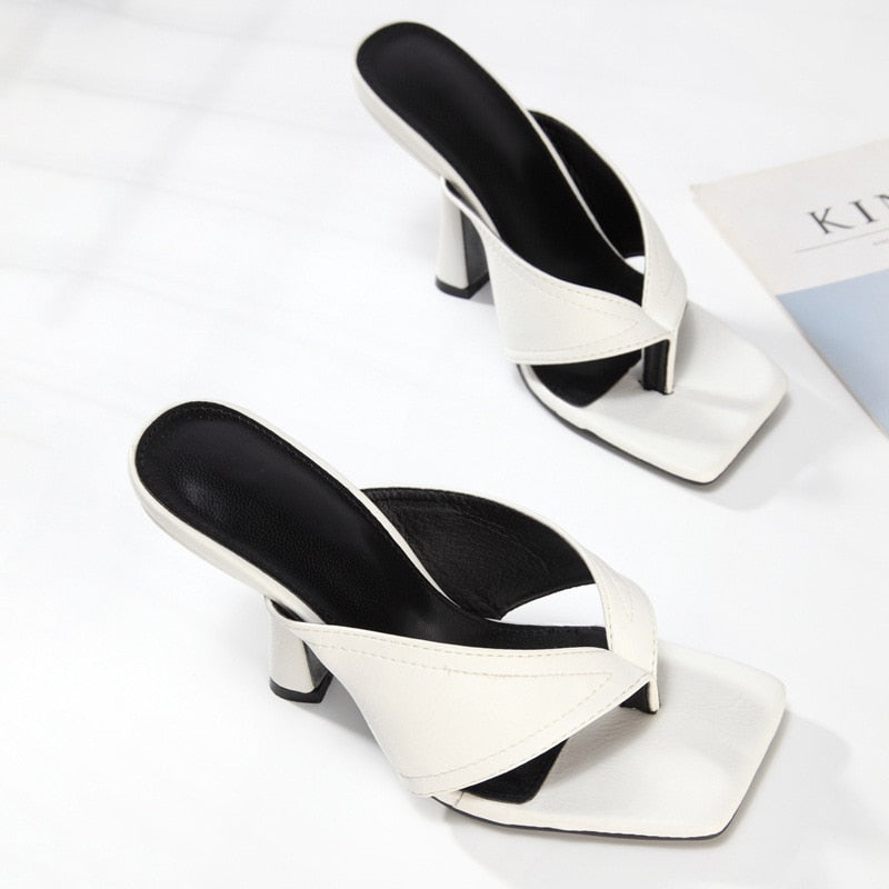 2021 Women Temperament White Office High Heels Summer Fashion Personality Flip Flops Slip-on Comfortable Ladies  Women Shoes