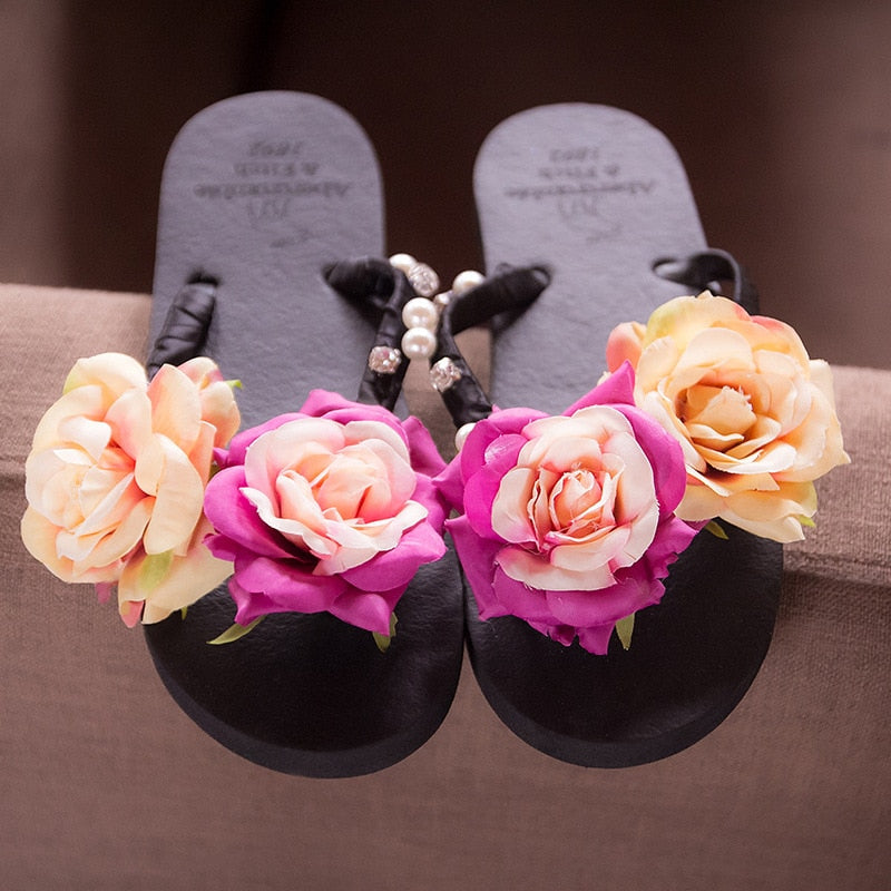 3cm High Heel Women's Summer Pure Handmade Flower Sandals Beach Vacation Flip-flops Womens Slippers Indoor  Flip Flops Women