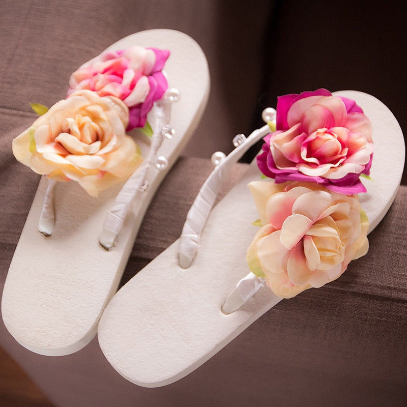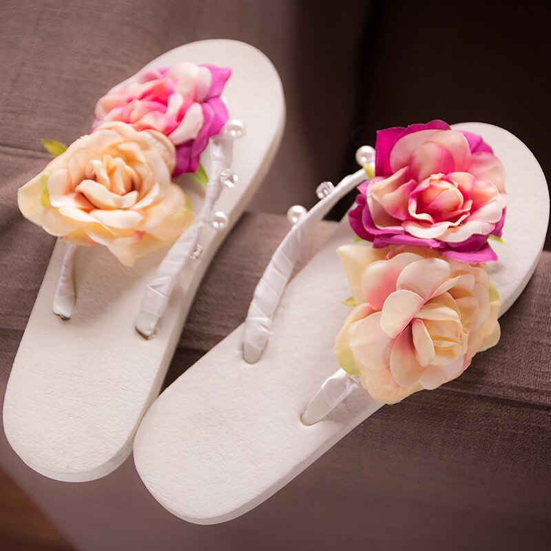3cm High Heel Women's Summer Pure Handmade Flower Sandals Beach Vacation Flip-flops Womens Slippers Indoor Flip Flops Women