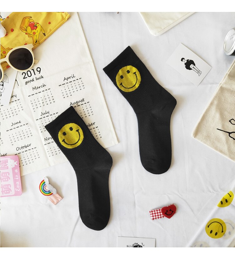 5pairs/set Women's Socks Big Smile Face Mid-calf Length Media Corta Crew Female Cotton Sock Couple Socks