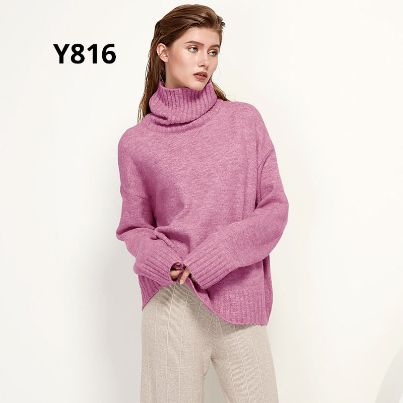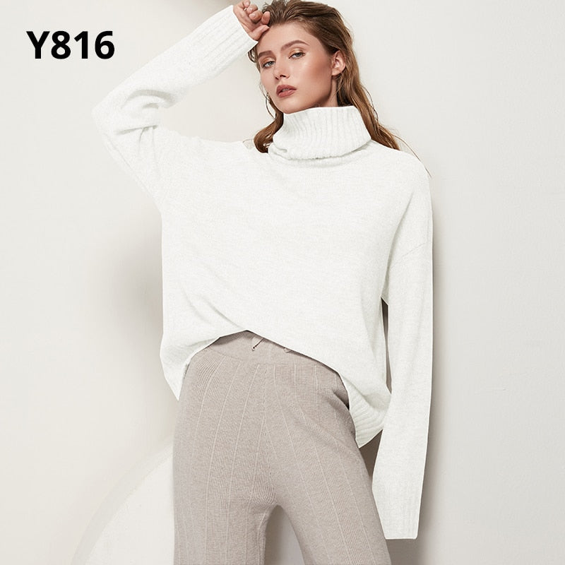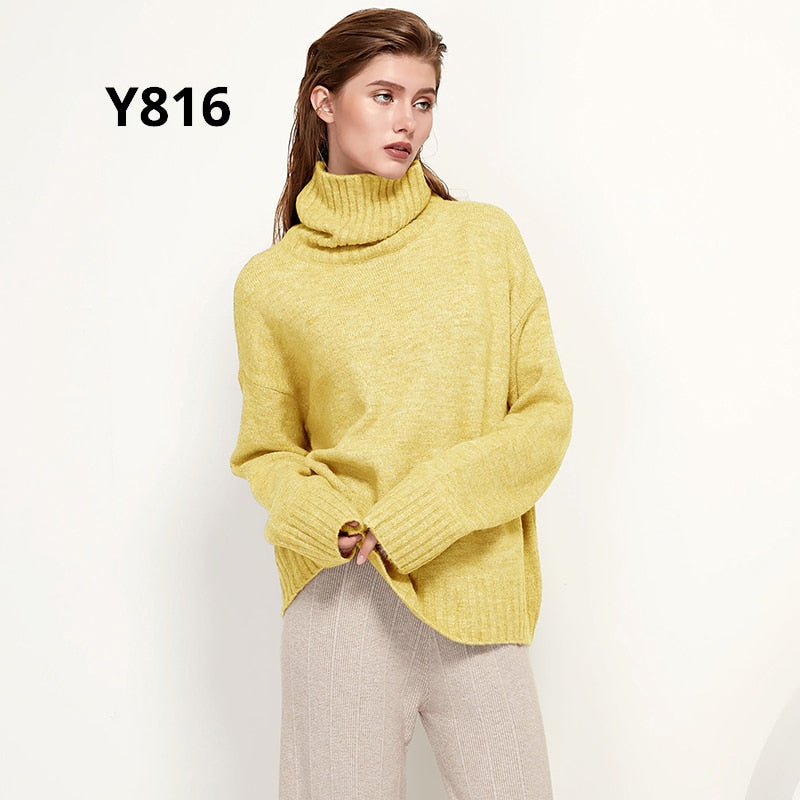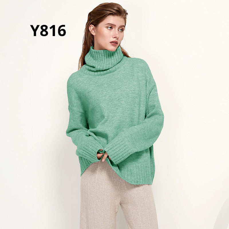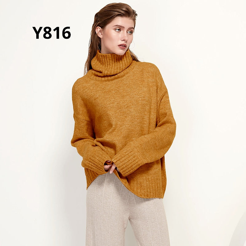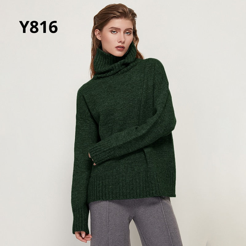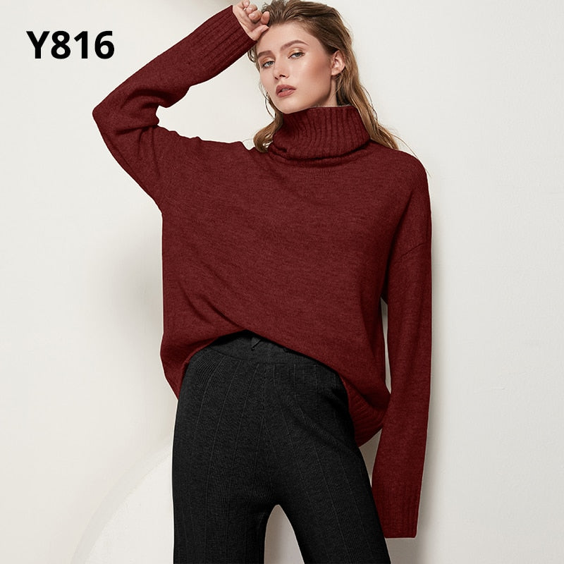 Aachoae Autumn Winter Women Knitted Turtleneck Wool Sweaters 2021 Casual Basic Pullover Jumper Batwing Long Sleeve Loose Tops