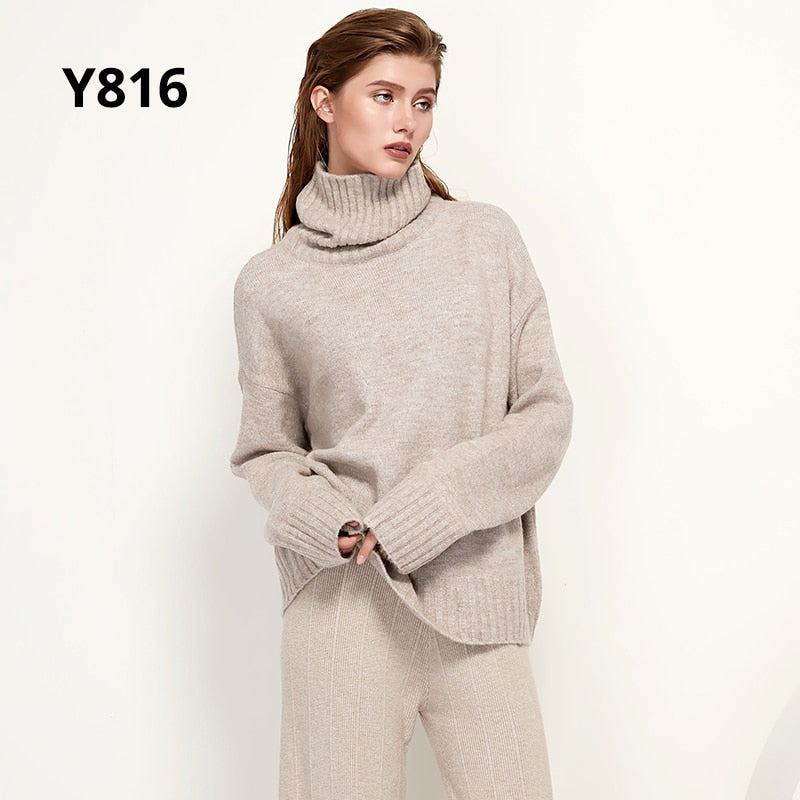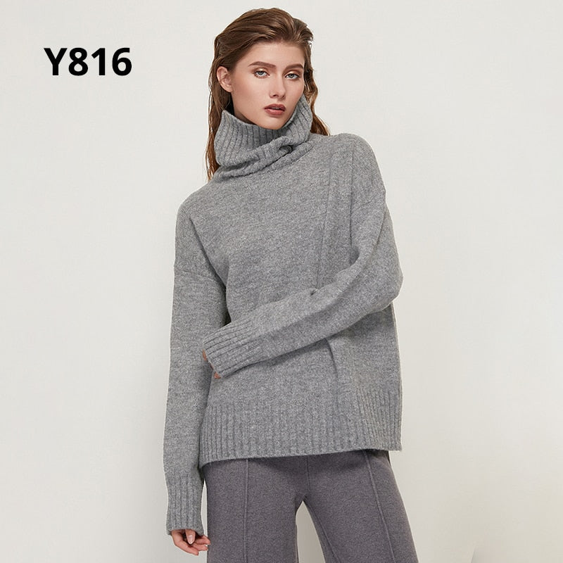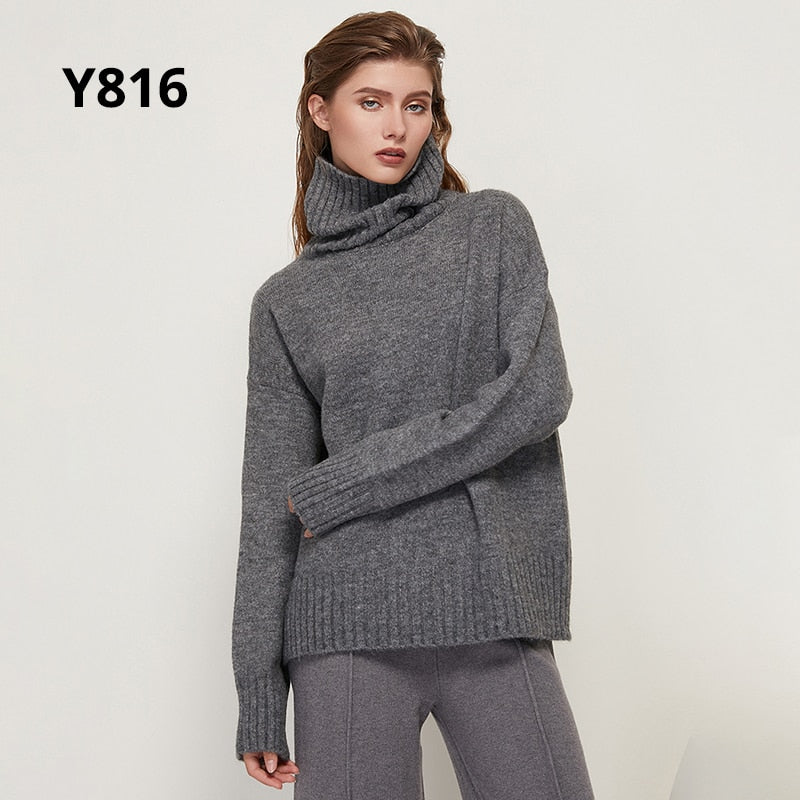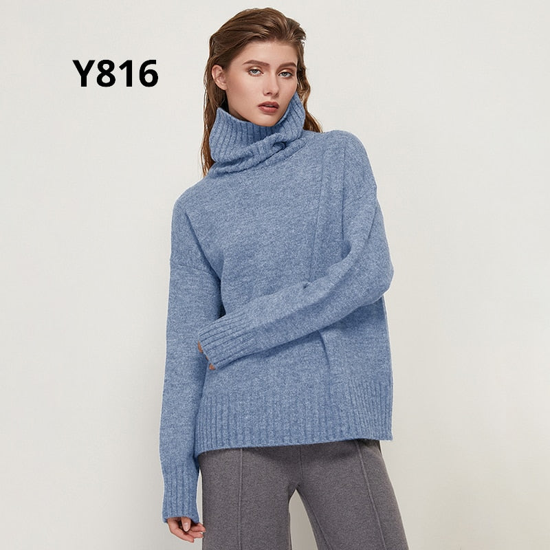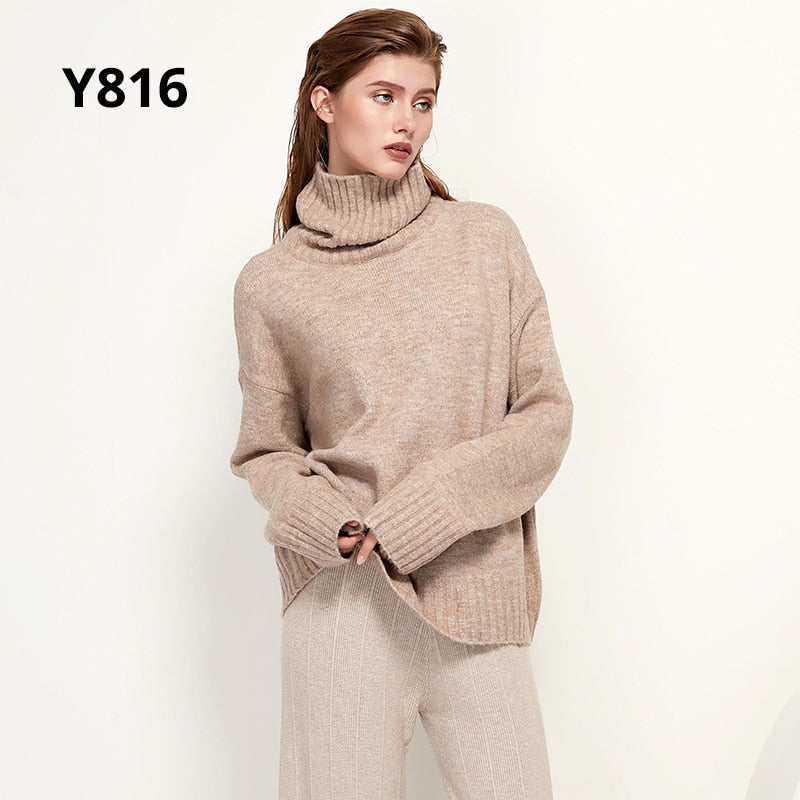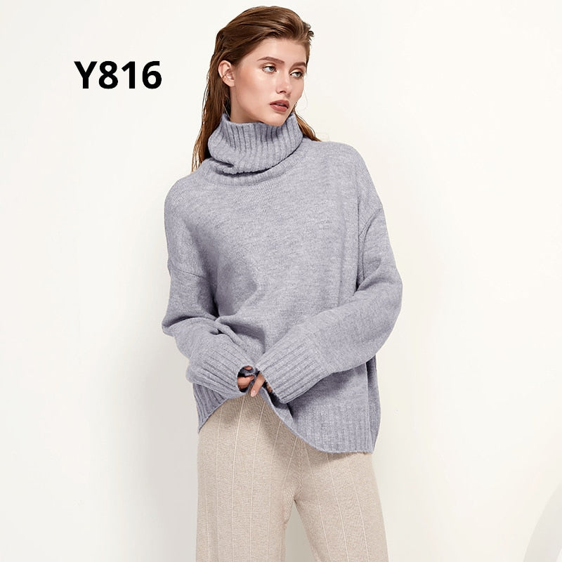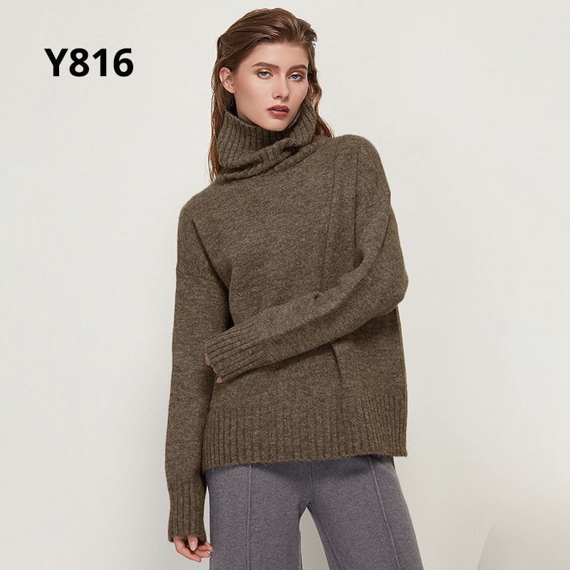 Aachoae Autumn Winter Women Knitted Turtleneck Wool Sweaters 2021 Casual Basic Pullover Jumper Batwing Long Sleeve Loose Tops
