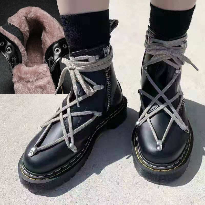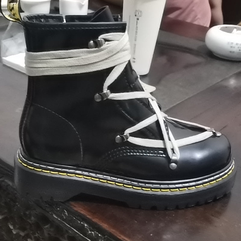 Ankel Boots for Women Chunky Martin Boots Genuine Leather Ladies Fashion Platform Motorcycle Boots Botas De Invierno Para Mujer