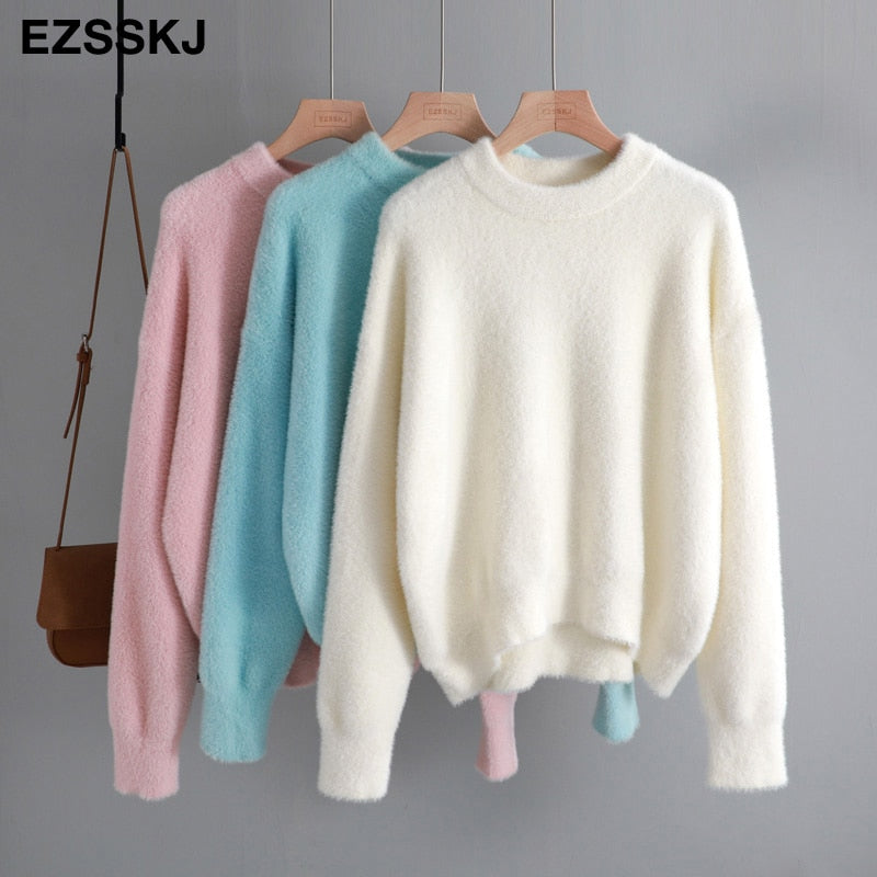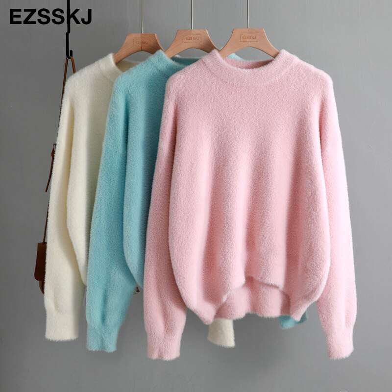 autumn winter oversize thick mink cashmere sweater poullovers women batwing sleeve 2019 female casual warm fur sweater jumper