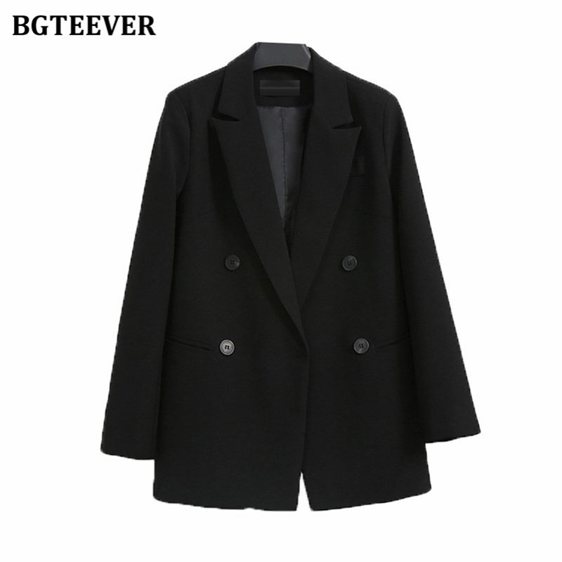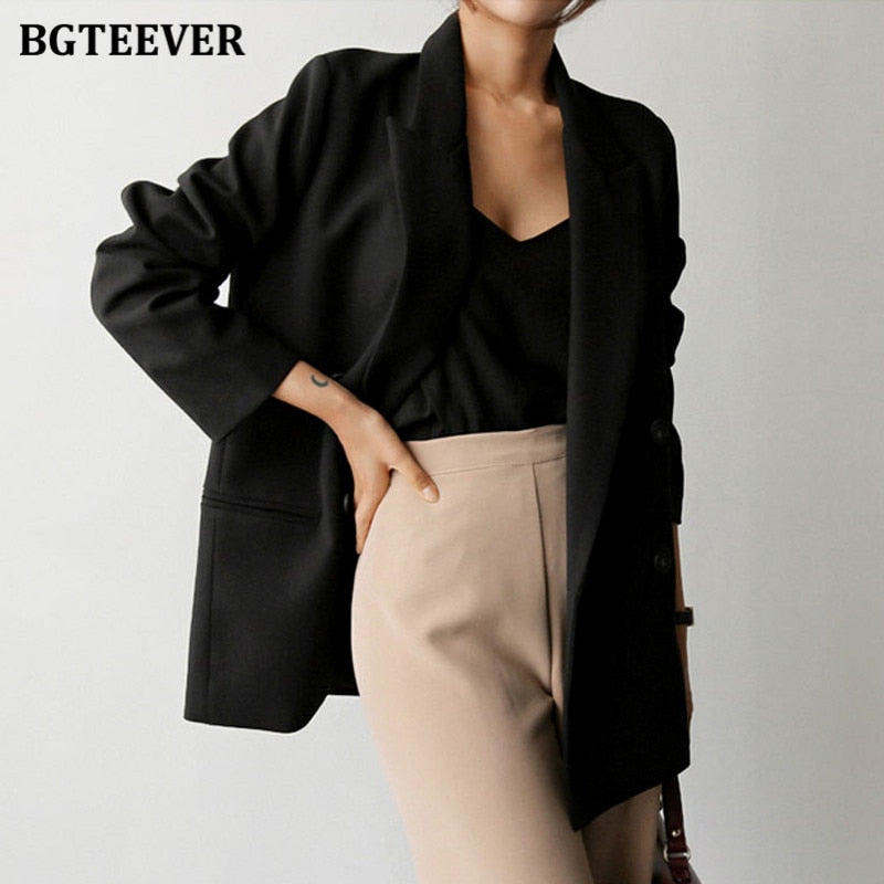 BGTEEVER Autumn New Fashion Notched Collar Women Blazer Elegant Long Sleeve Loose Double Breasted Female Suits Jackets 2021