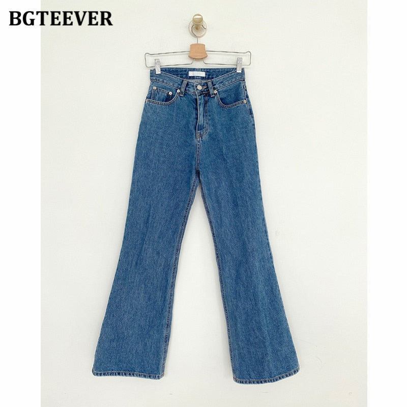 BGTEEVER Casual Loose Straight Women Jeans Pants High Waist Pockets Female Floor-length Wide Leg Denim Trousers 2021 Autumn