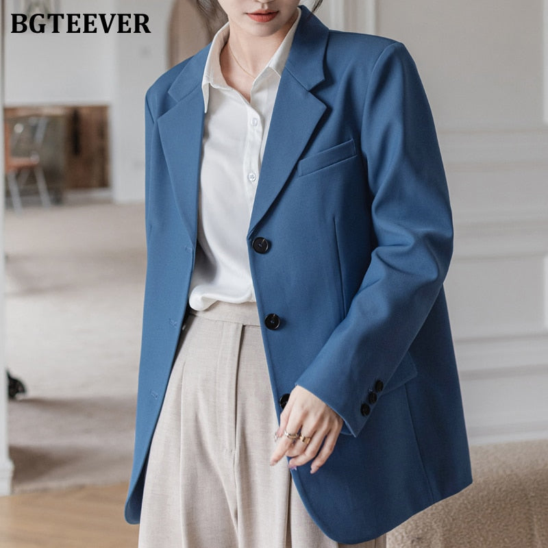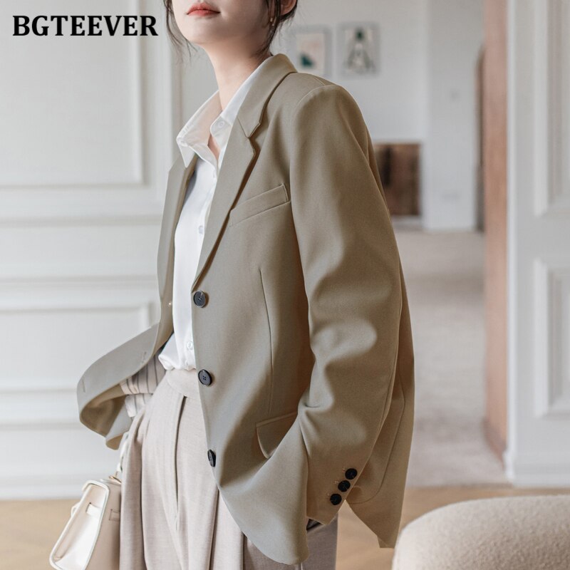 BGTEEVER Elegant Office Ladies Loose Single-breasted Blazer Women Solid Notched Collar Suit Jackets 2021 Spring Outwear Femme