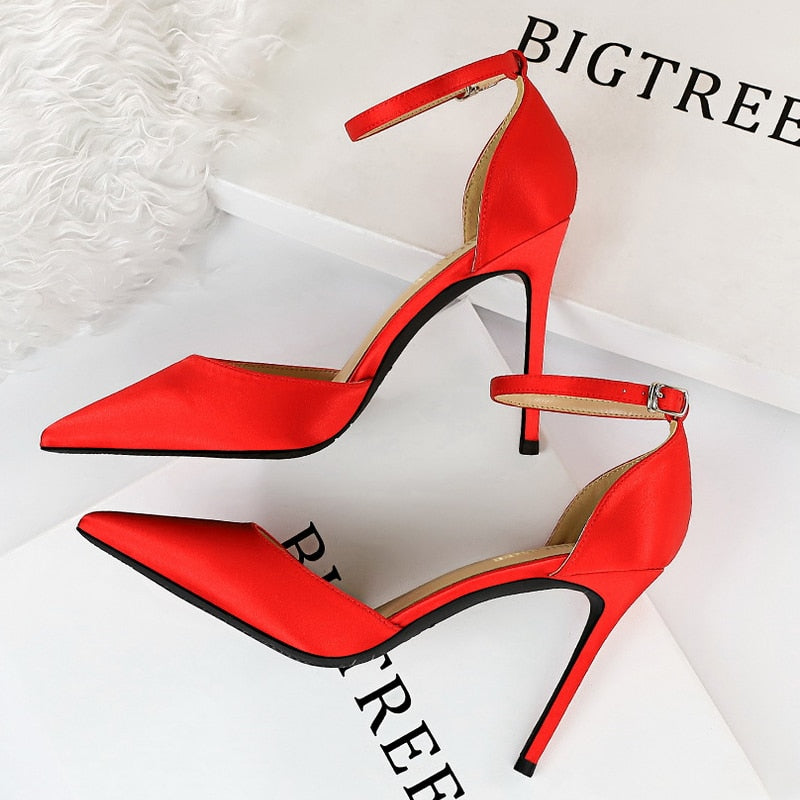 BIGTREE Shoes Green Blue Women Pumps Fashion Women Office Shoes Sexy High Heels Silk Stiletto Heels Women Sandals Plus Size 43