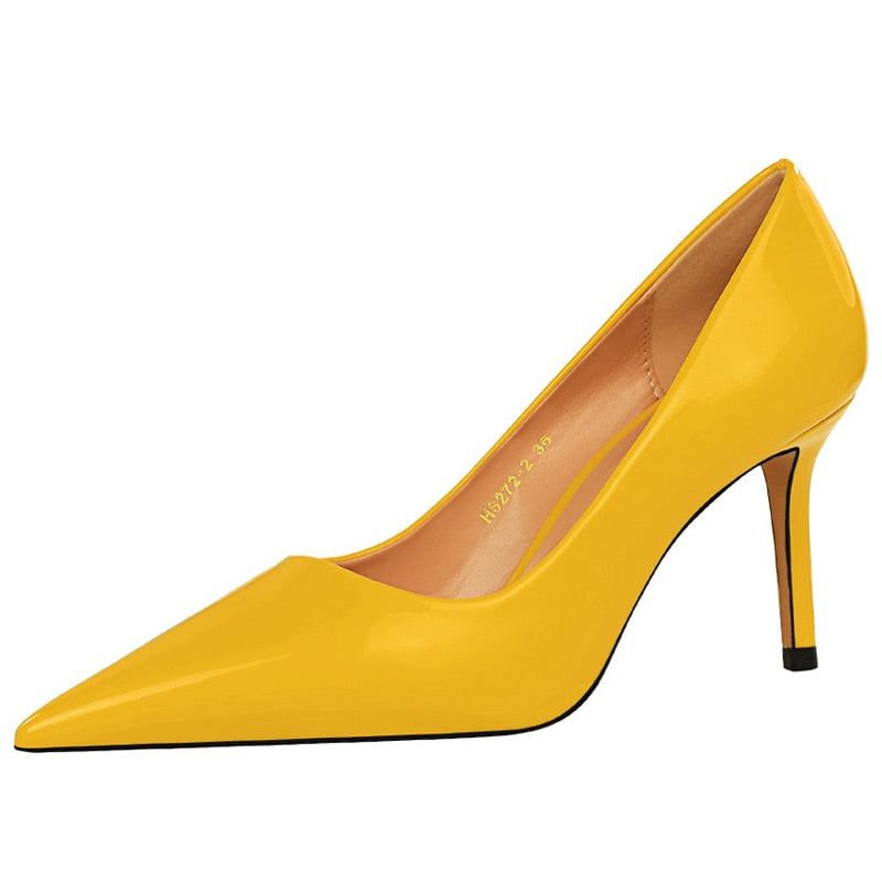 BIGTREE Shoes Patent Leather Woman Pumps Women Heels Stiletto 8 Cm High Heels Female Shoes Party Shoes Fashion Pumps Footwear