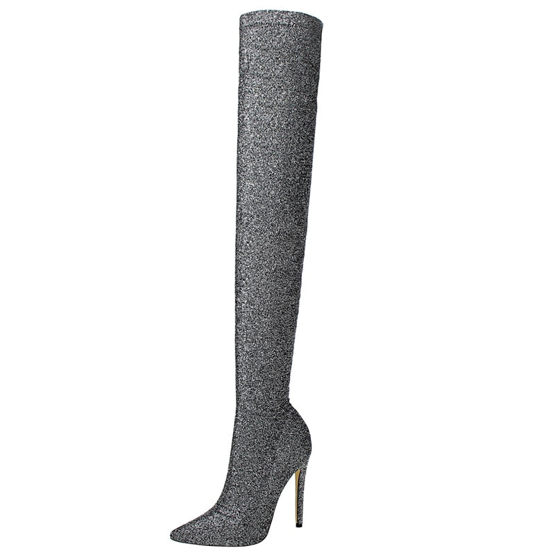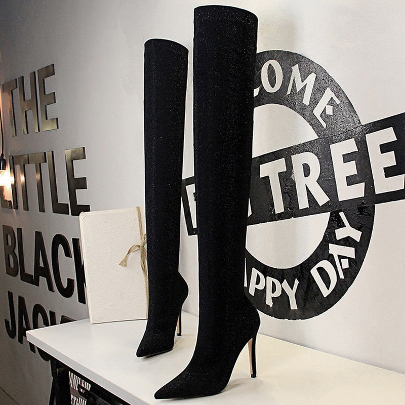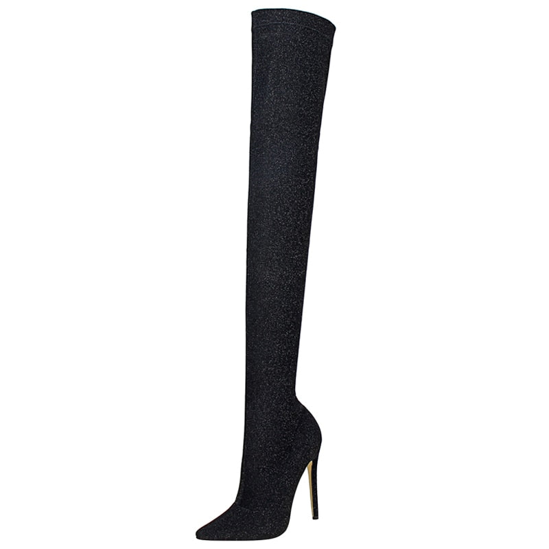 BIGTREE Shoes Women Boots Elastic Sexy Over-the-Knee Boots Women High Heel Boots Winter Female Long Boots Stiletto Heels 11.5 Cm