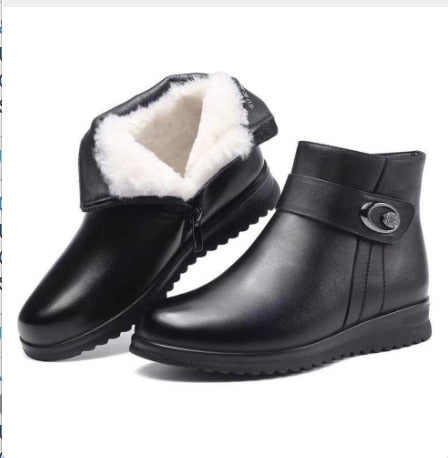 Black Wedge Womens Winter Boots Non-slip Warm Fur Ankle Boots Women Cheap Leather Boots For Mother Winter Shoes Famale