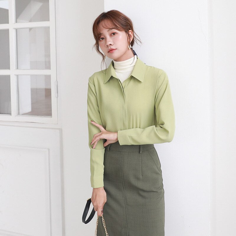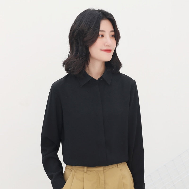 Brand Simplicity Chiffon Shirt and Tops 2021 New Women Solid Colors Casual Long Sleeve Blouse Lady Office OL Shirts Blusas