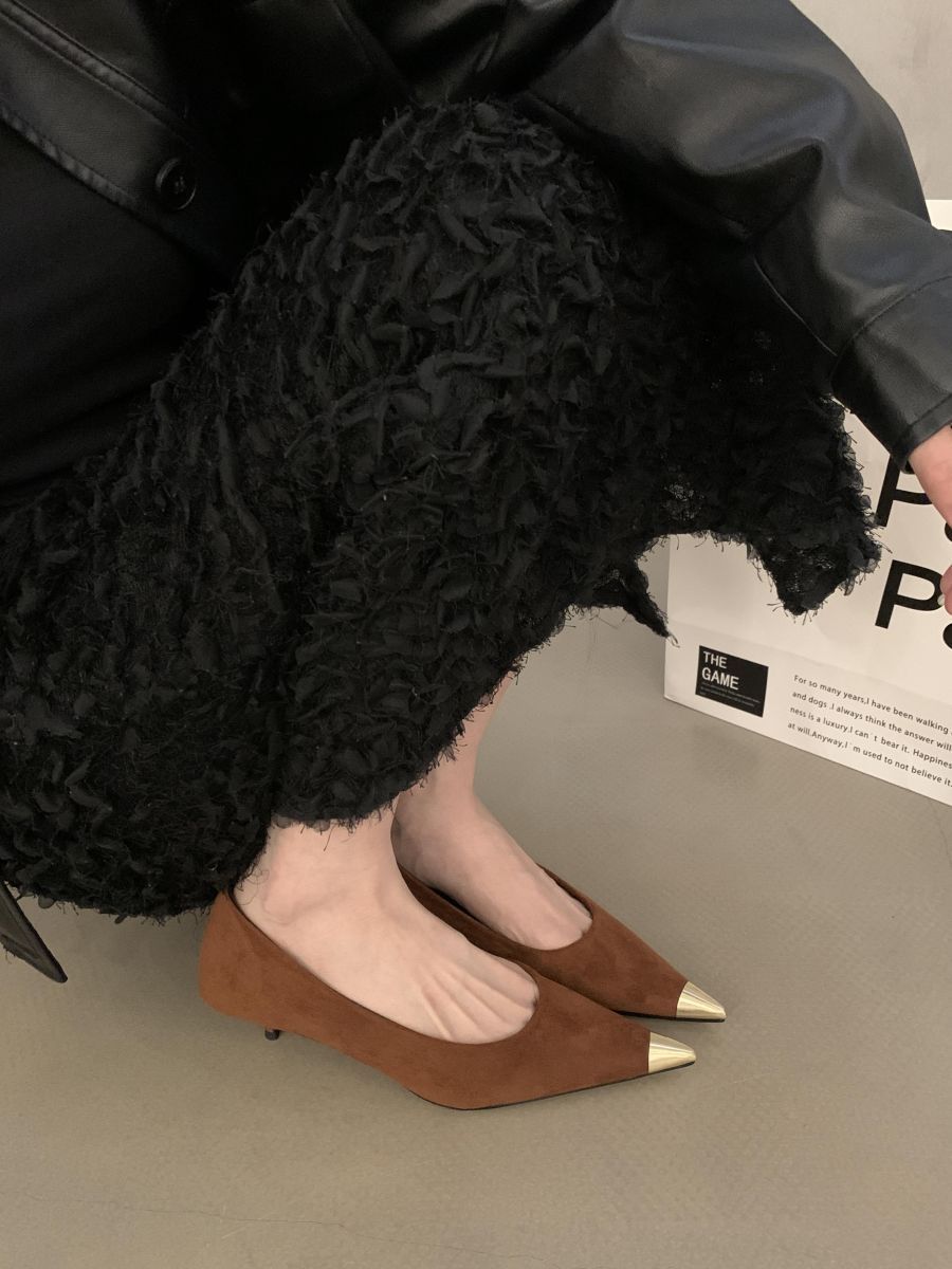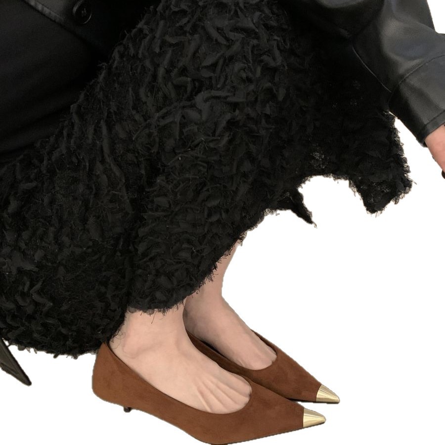 Breakj Breakj 2025 New Retro Leopard-Print Metal Shallow Mouth Single Shoes French Temperament Velvet Head Tip Fine Heel High Heels