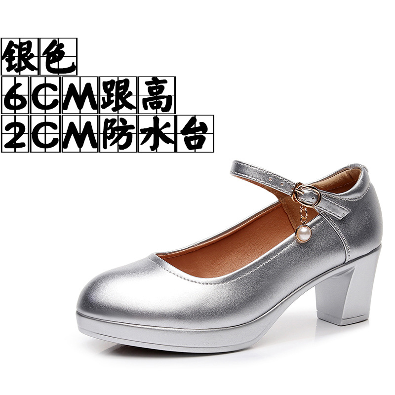 Breakj Breakj 6Cm Silver Heeled Show Shoes Thick-Singing Leather Shoes Thick-Soled Model Single-Shoe Large-Size Working Shoes