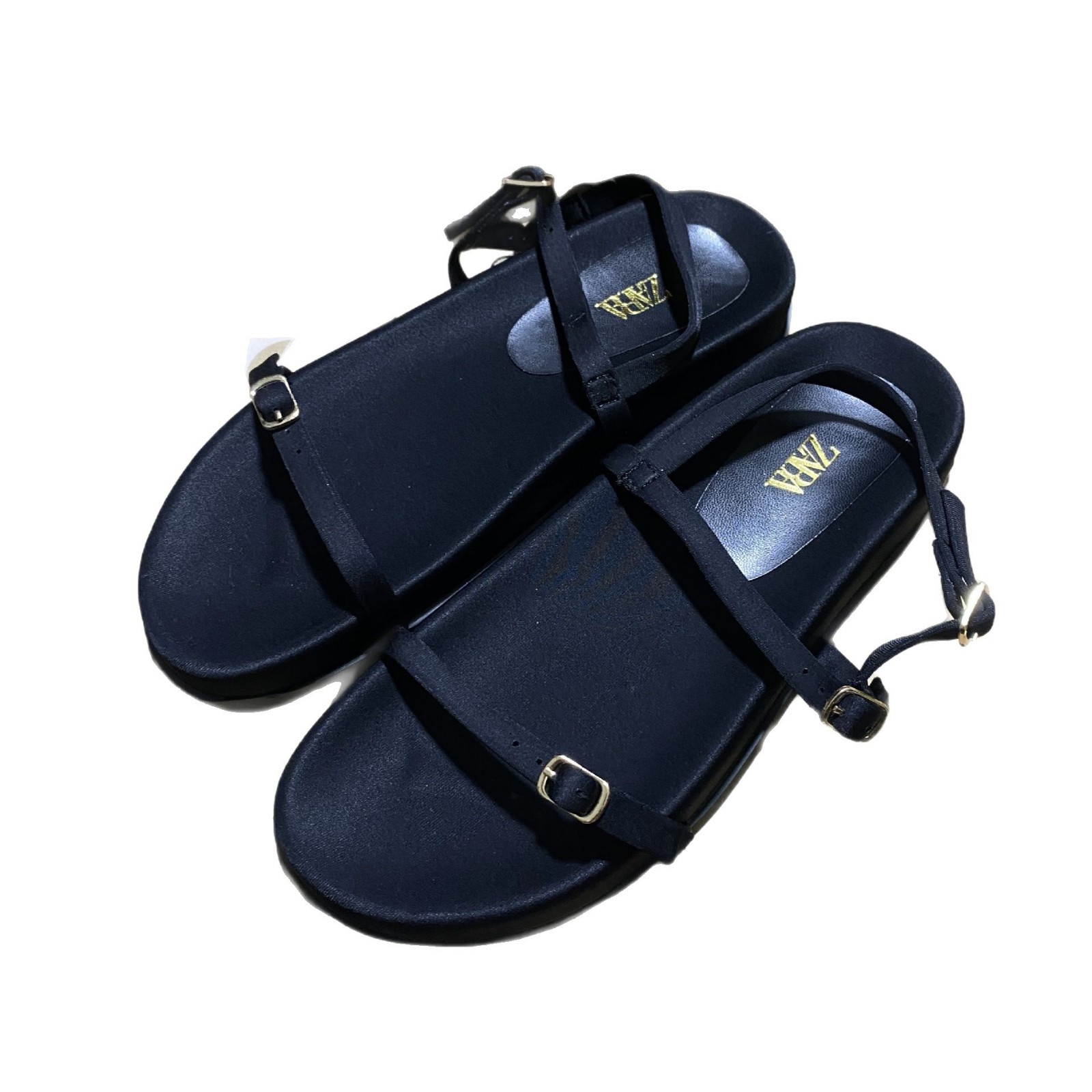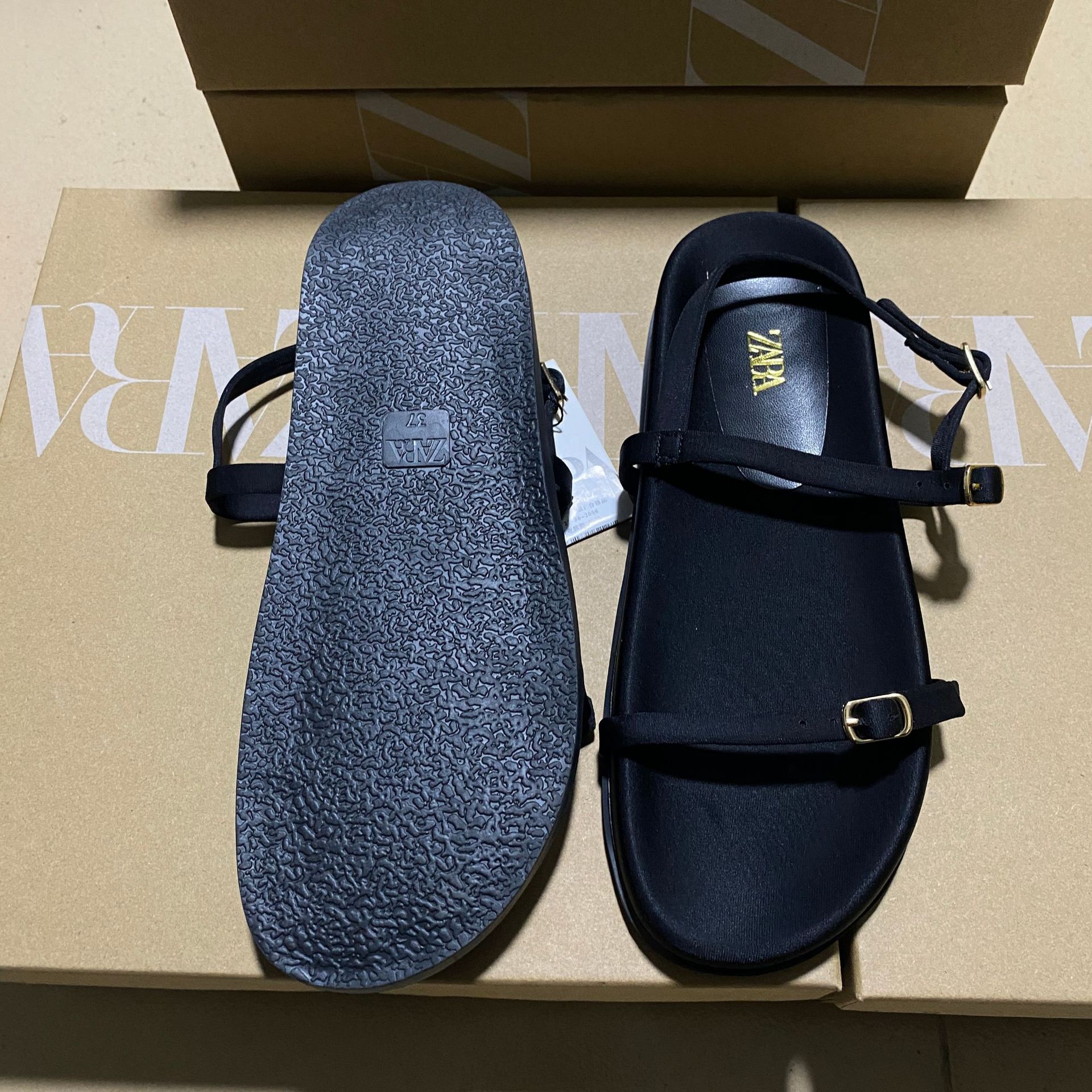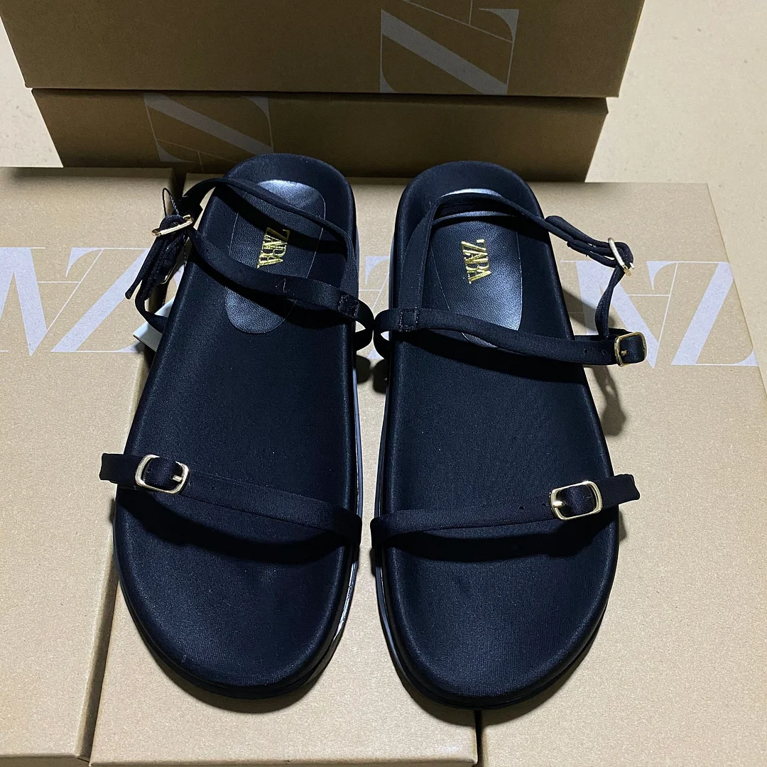 Breakj Breakj Autumn New Square Head Silk And Satin Fabric With A Shallow Flat Bottom Casual Buckle Roman Cool Slippers