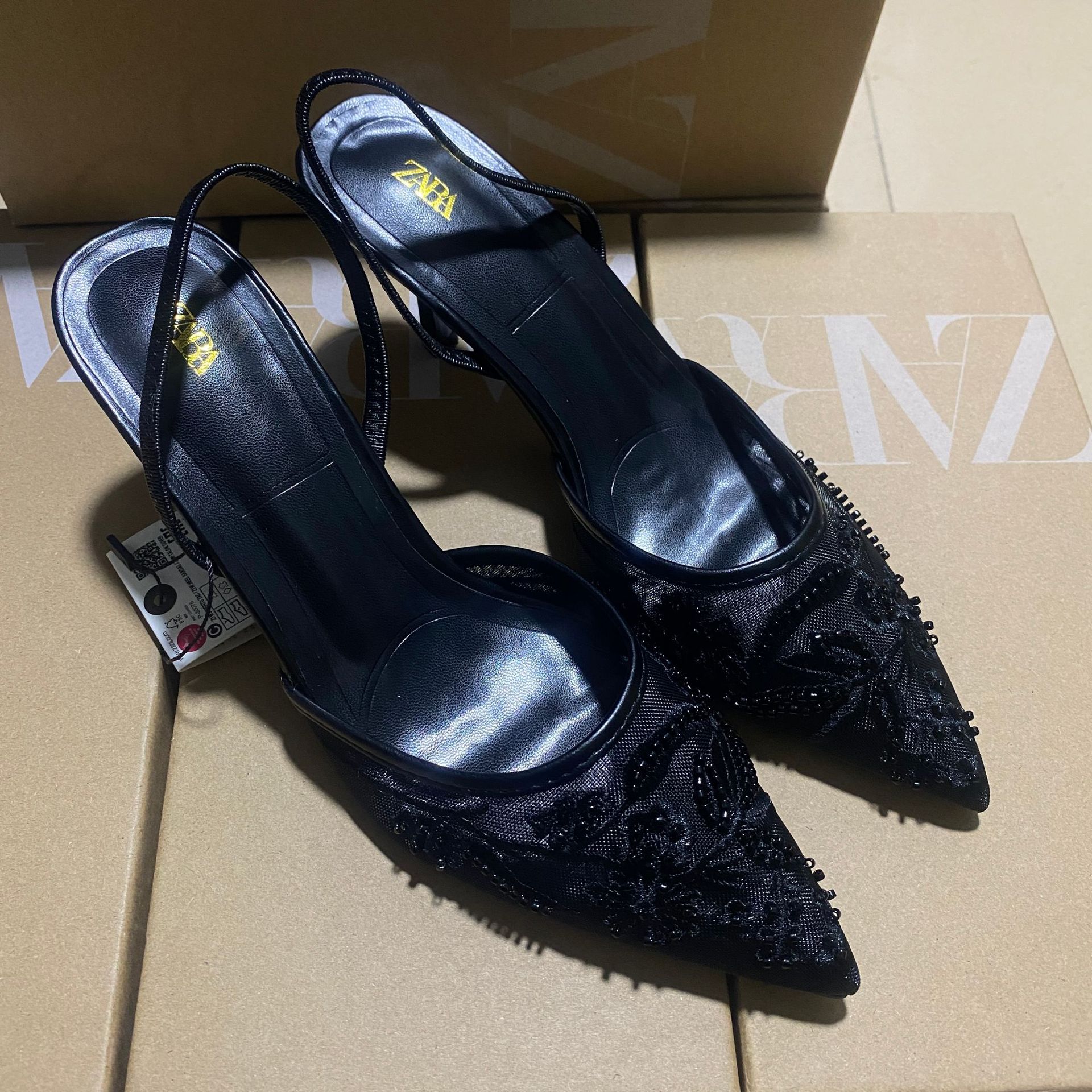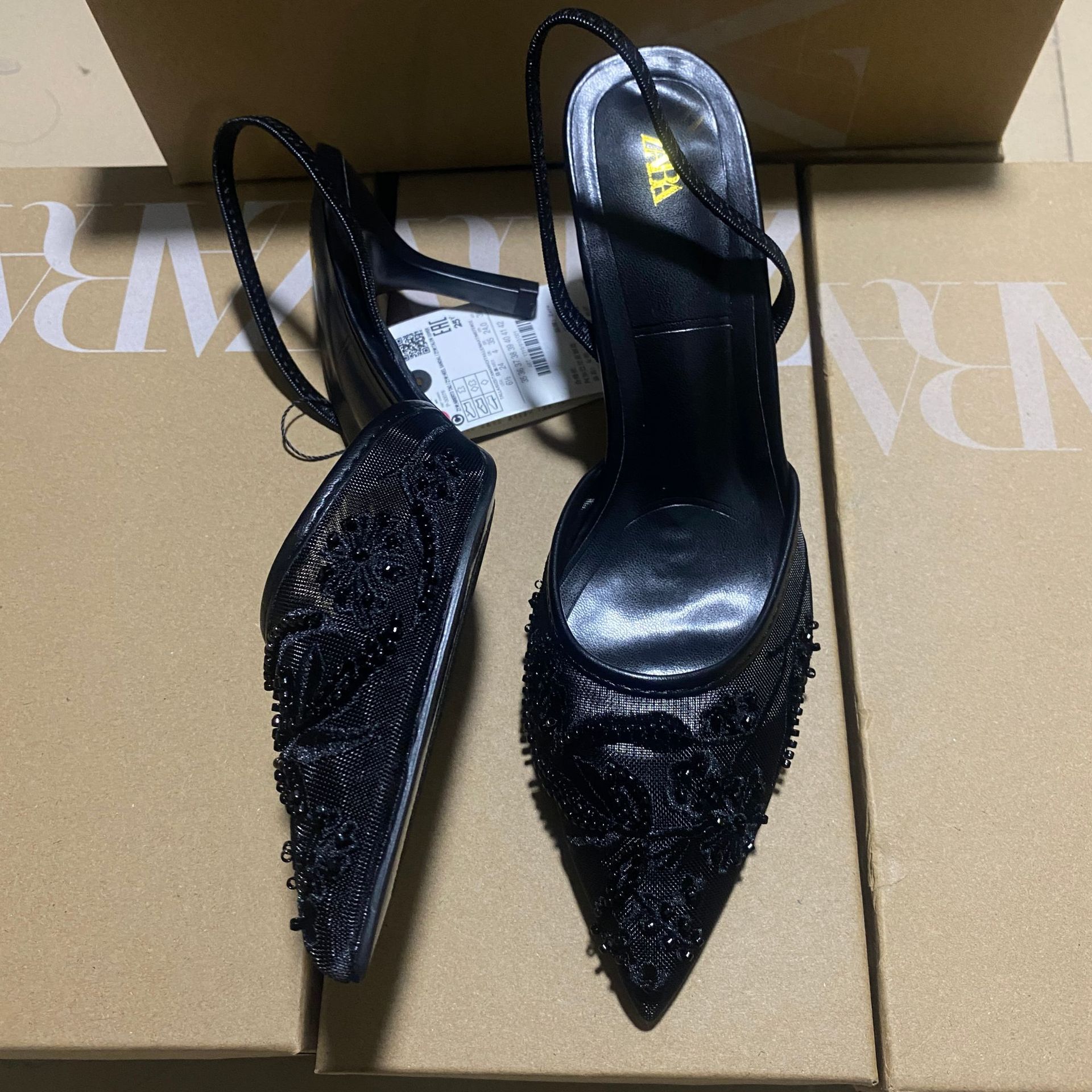 Breakj Breakj Autumn New Stumbling Temperament Fine Heel Shoes Tip Embroidery Bead Mesh Sandals