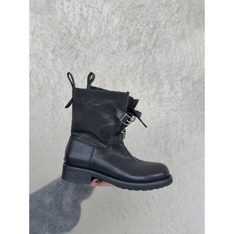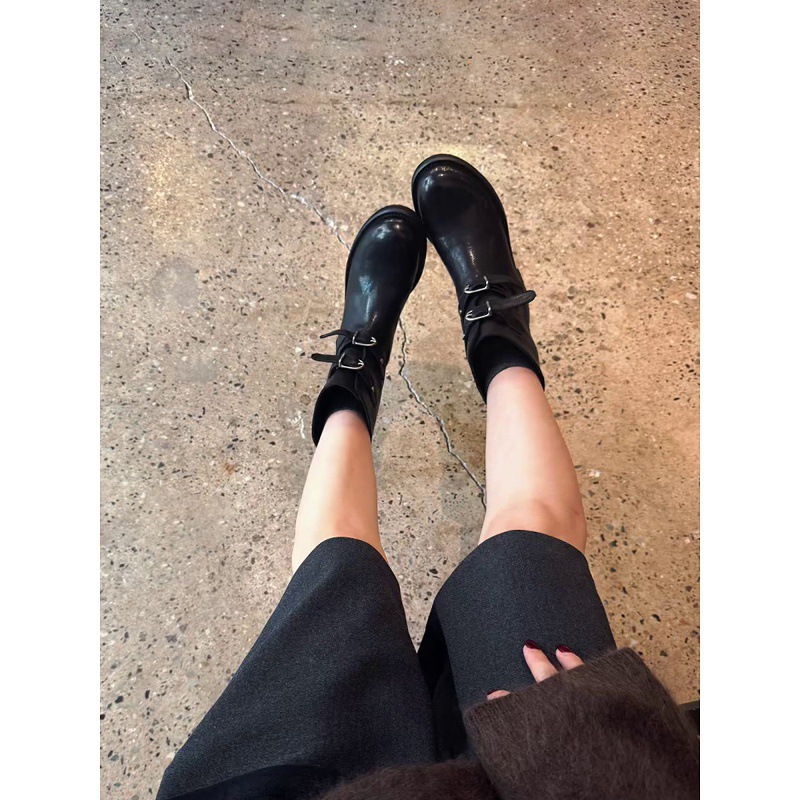 Breakj Breakj Belt Buckle Short Barrel Knight Boots Coarse And Western Cowboy Boots Women Thin Round Head Locomotive Short Boots