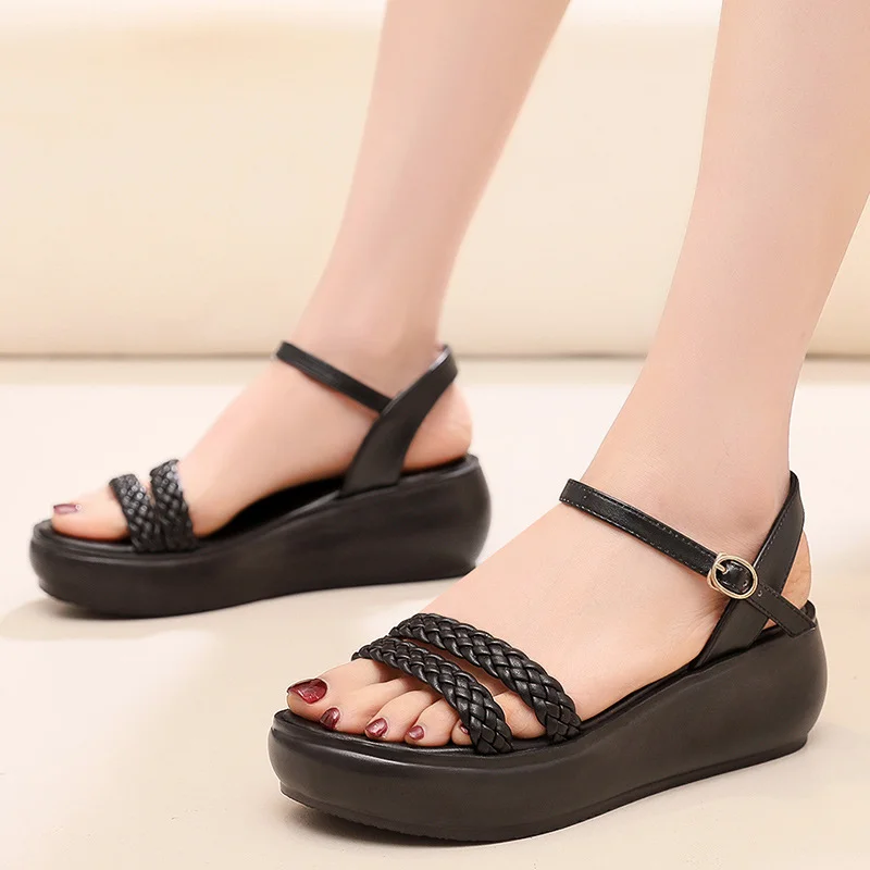 Breakj Breakj Braided Slope And Waterproof Table Beach Sandals Women's Summer Buckle Loose Cake Thick Soles Comfortable Casual Women's Shoes
