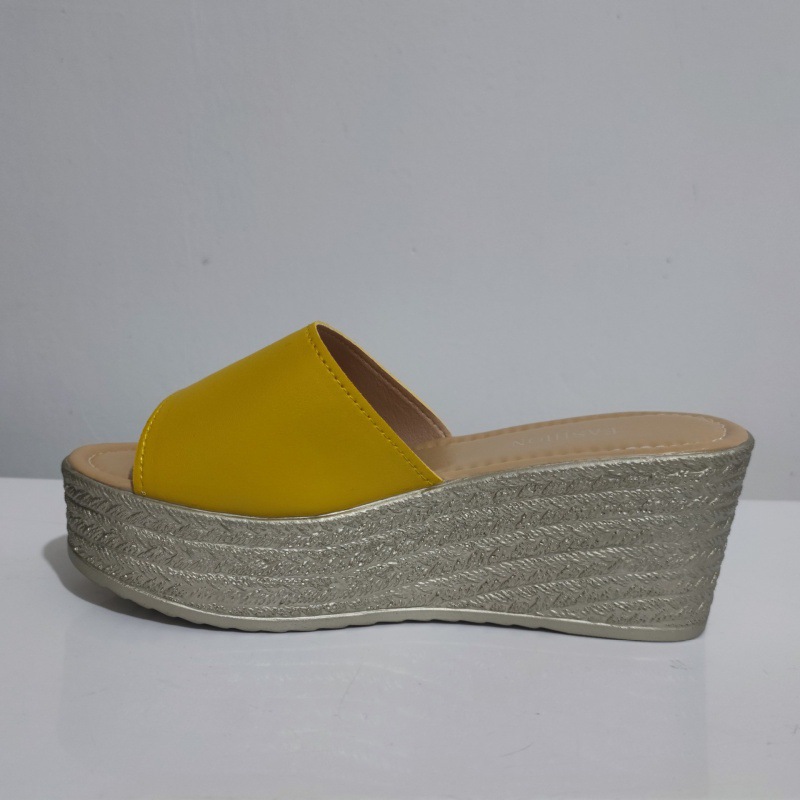 Breakj Breakj Cake Slippers Women Cool Drag Slope With High Heel 7CM Word Drag Leather Large Size Women's Shoes 35-42 Perennial