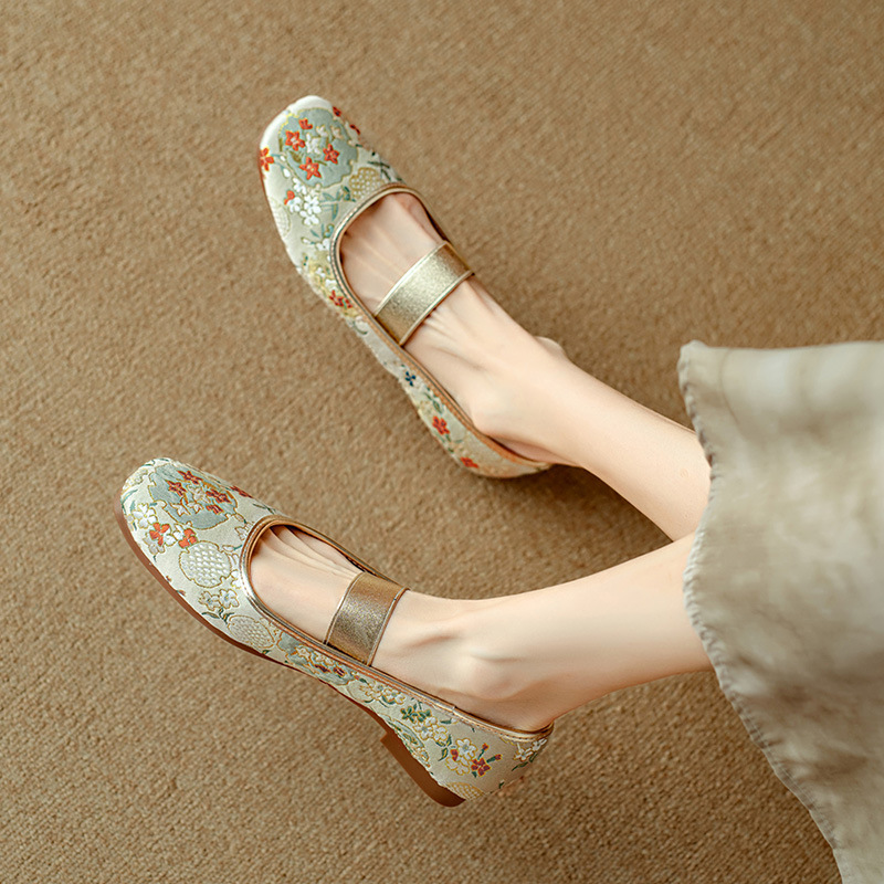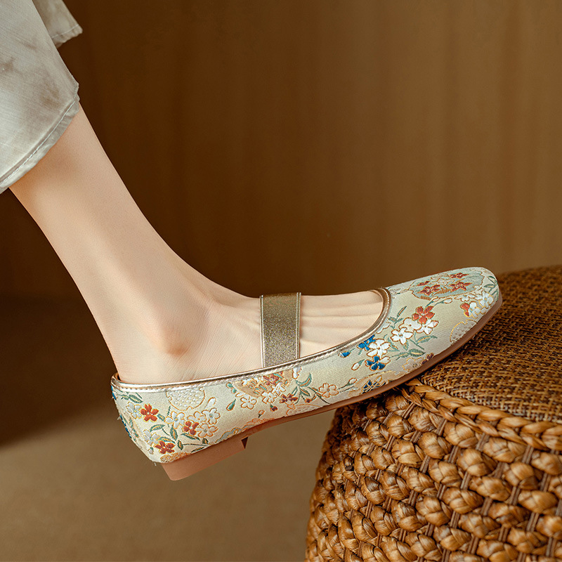 Breakj Breakj Chinese Style Women's Shoes Embroidery Shoes Embroidery Square Shallow Flat Bottom Mary Jane Single Shoes
