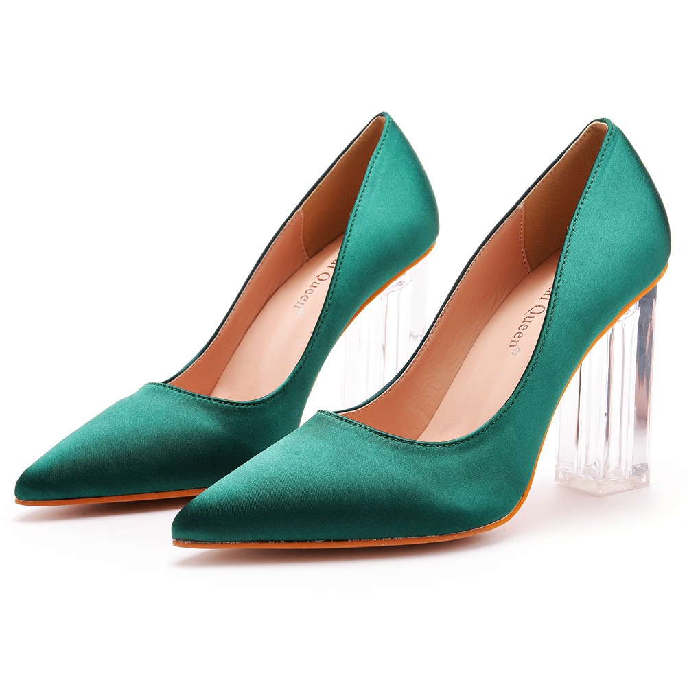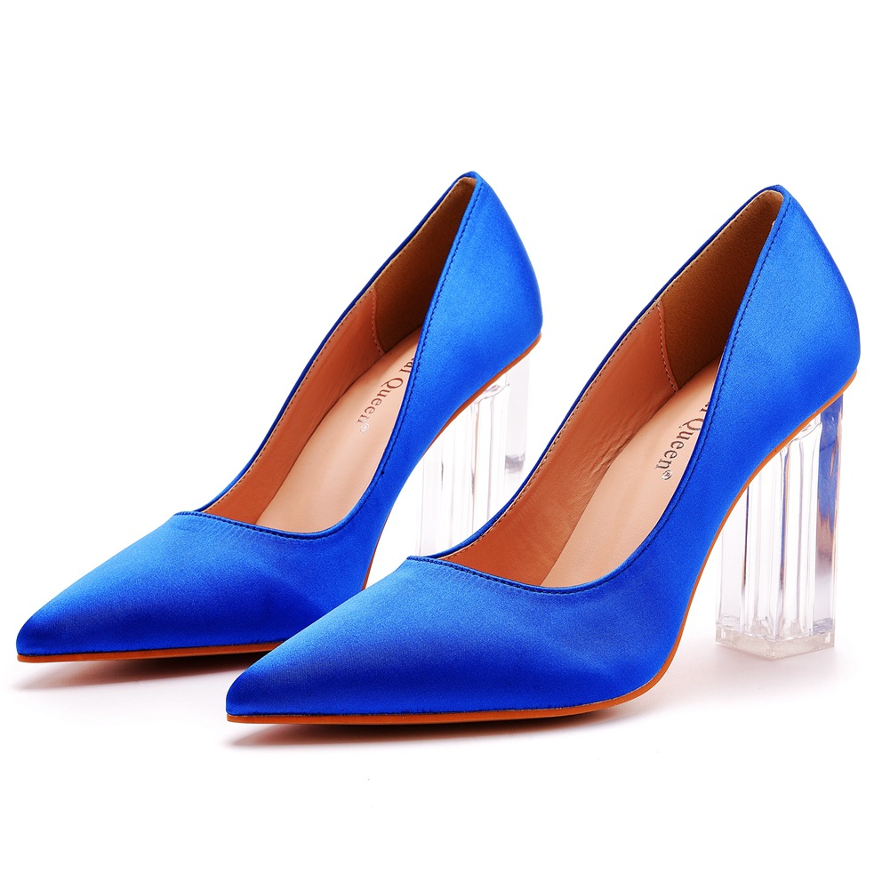 Breakj Breakj Cm Crystal Transparent Square Heel Pointed Shoes Bridal Shoes Silk Satin Dress Dress Shoes Wedding Shoes