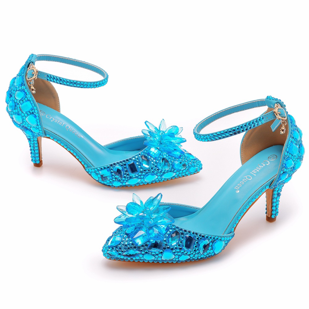 Breakj Breakj Cm Large-Size Sandals Fine Heel Head Crystal Glass High Heel Sandals Champagne Gold Banquet Dinner Women's Shoes