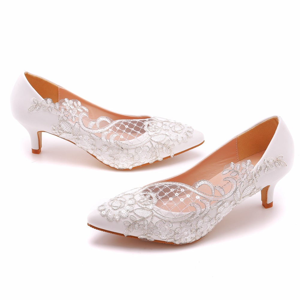 Breakj Breakj Cm Middle Heel Elegant Simple Lace Mesh Wedding Shoes Tip High Bridal Wedding Dress Shoes Spring And Autumn Single Shoes