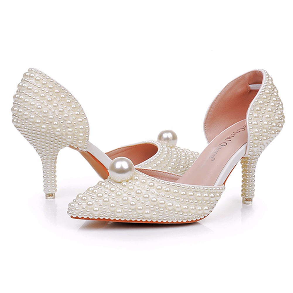 Breakj Breakj Cm Pointed High-Heeled Sandals Pearl Dinner Ball Beaded Sandals Bride Wedding Wedding Shoot White Wedding Shoes Female