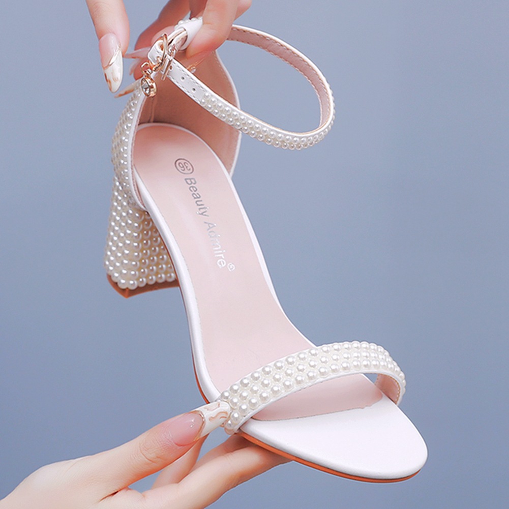 Breakj Breakj Cm Thick Heel And Light Mouth With Sandals Round Head Square Sandals White Pearl Wedding Shoes Size 44 Yards 45 Yards