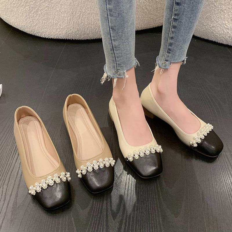 Breakj Breakj Fragrant Style Single Shoes Women 2025 New Fashion Comfortable Square Shoes Shallow Pearl Coarse French Single Shoes