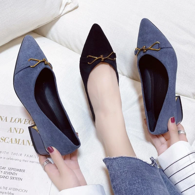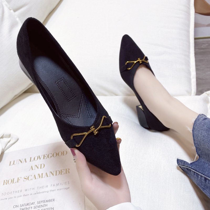 Breakj Breakj Heels Women's Velvet Commuting Fashion Single-Shoe Square Heel French Heel Lady Single Shoes OL Shallow Working Women's Shoes