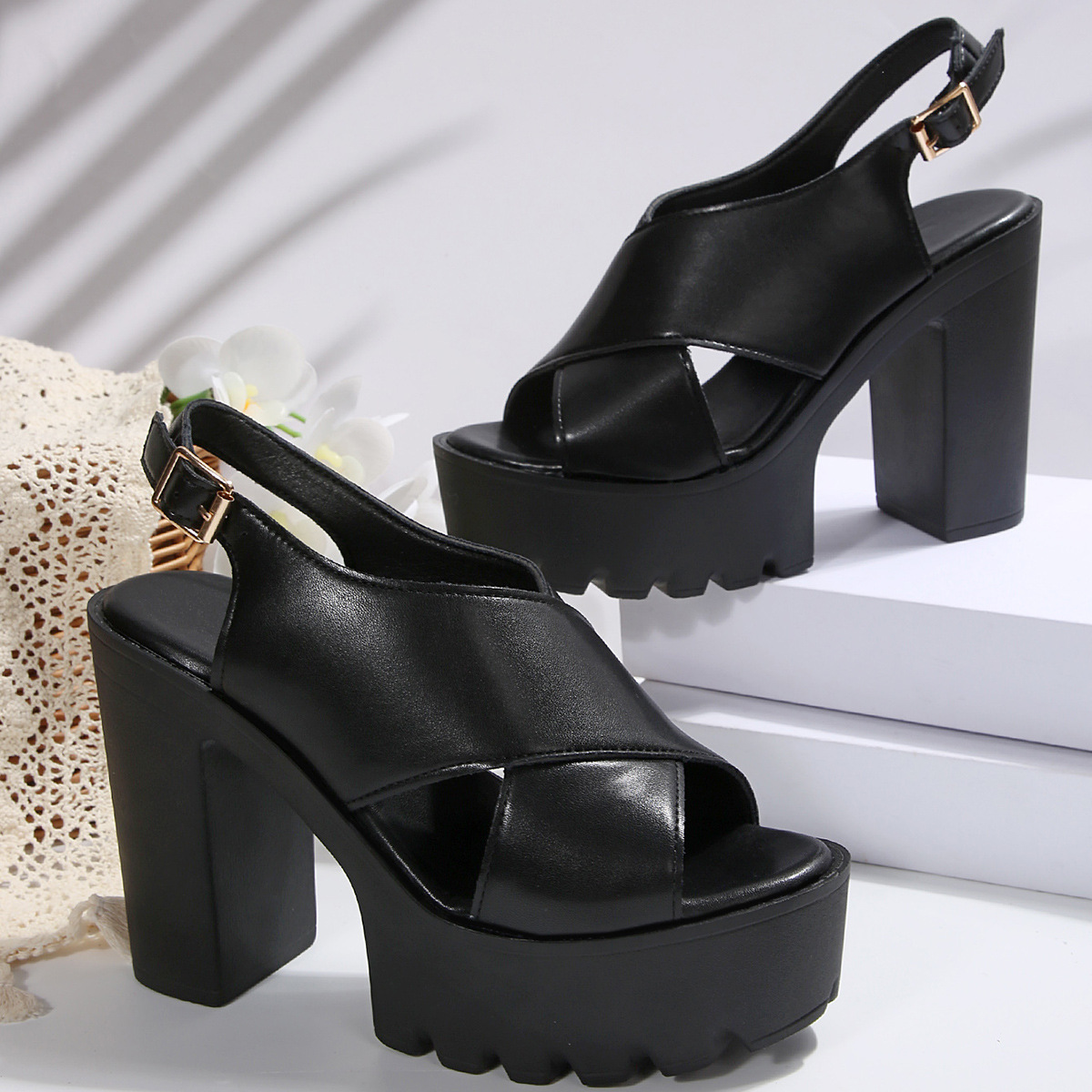 Breakj Breakj High-Heeled Sandals Women 2025 Summer New Cross-Duced Large-Size Fish-Mouthed Sandals