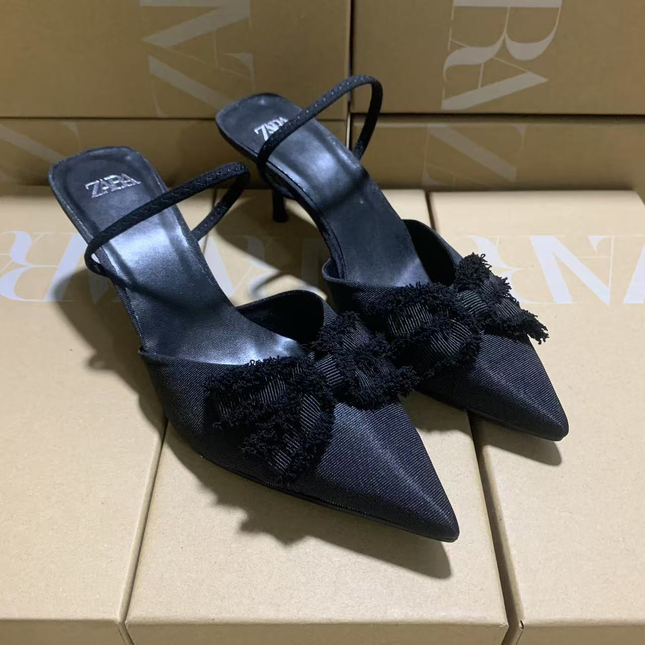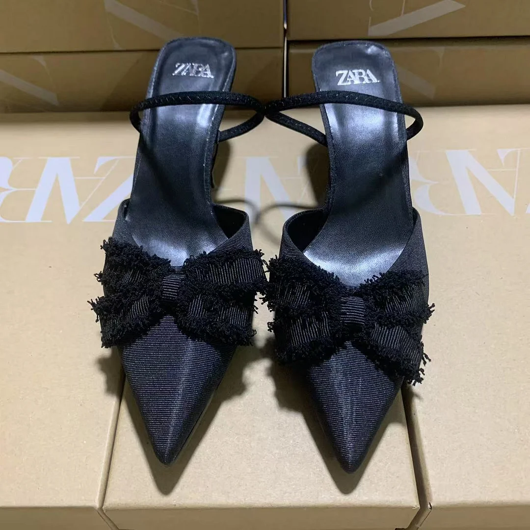 Breakj Breakj Home 2025 New Women's Shoes Black Low Heel Temperament High Heels High-Heeled Shoes Behind The Shallow Mouth Trip Single Shoes