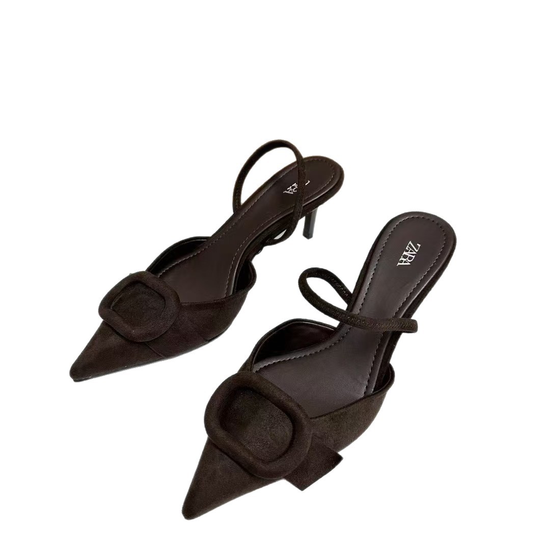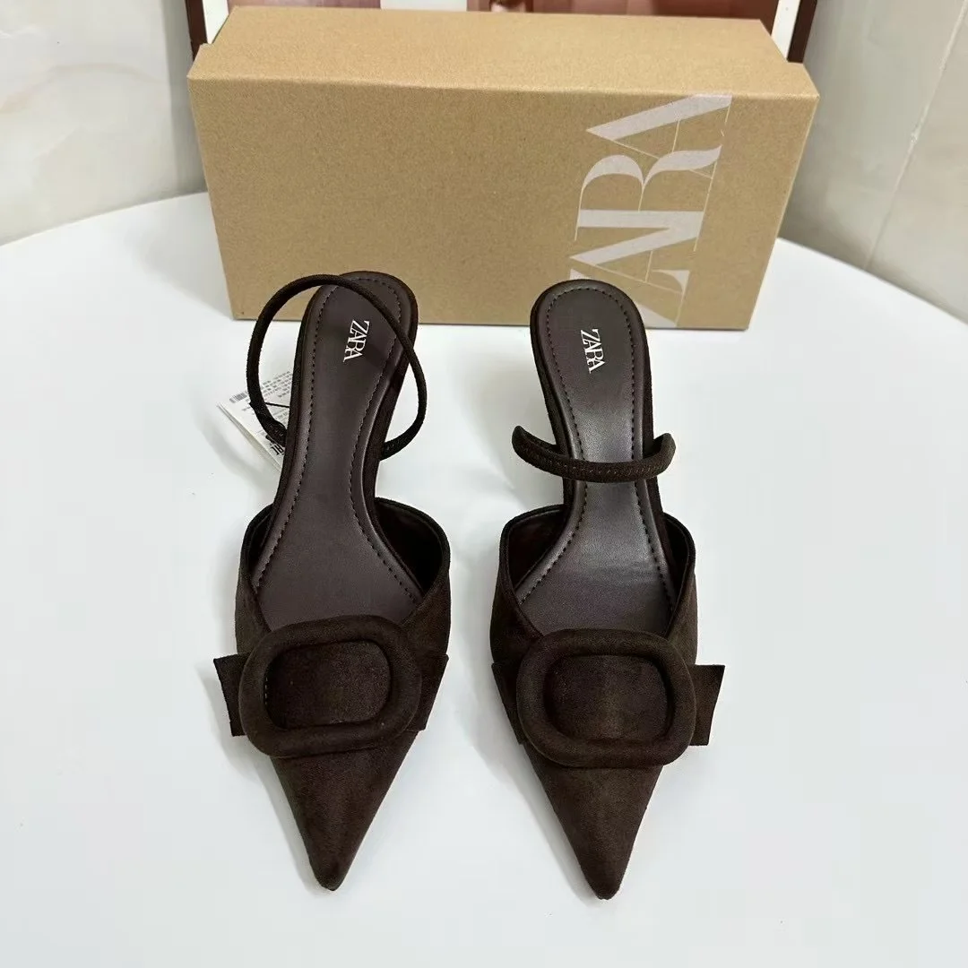Breakj Breakj Home 2025 Summer New Women's Shoes Exposed Light Sandals Brown Pointed High Heels Muller Shoes